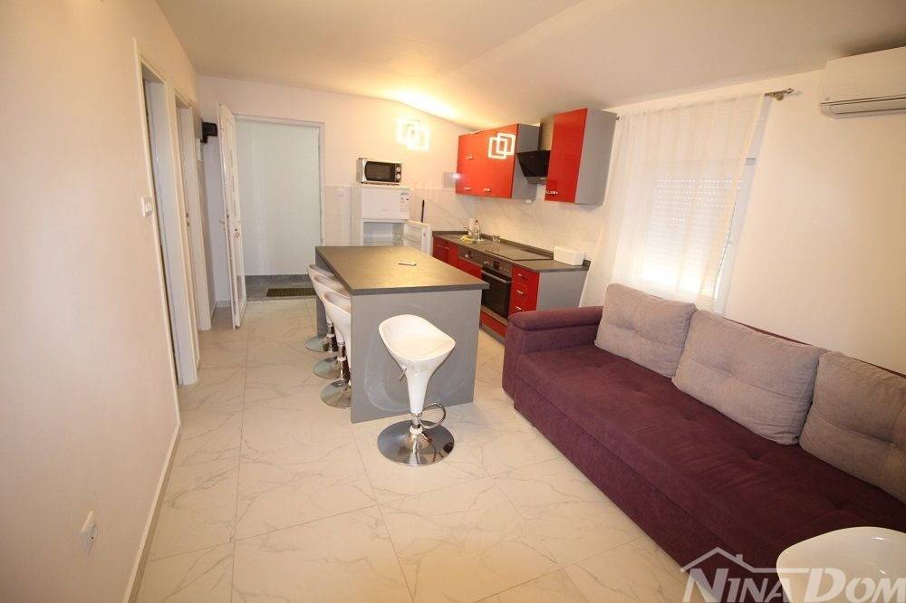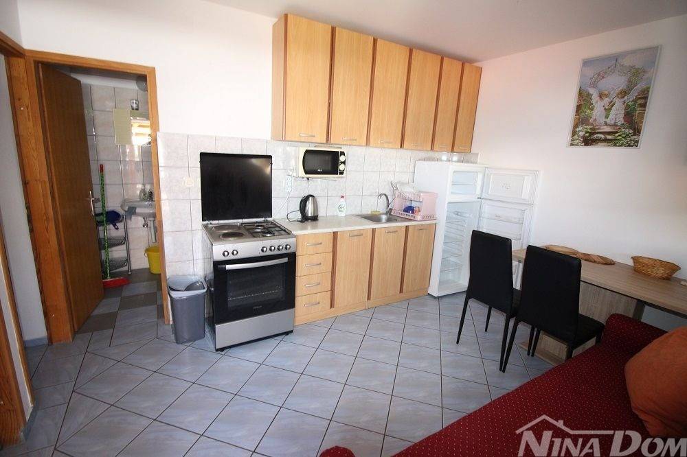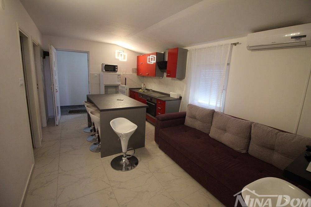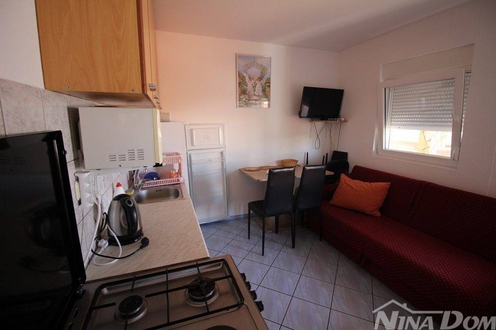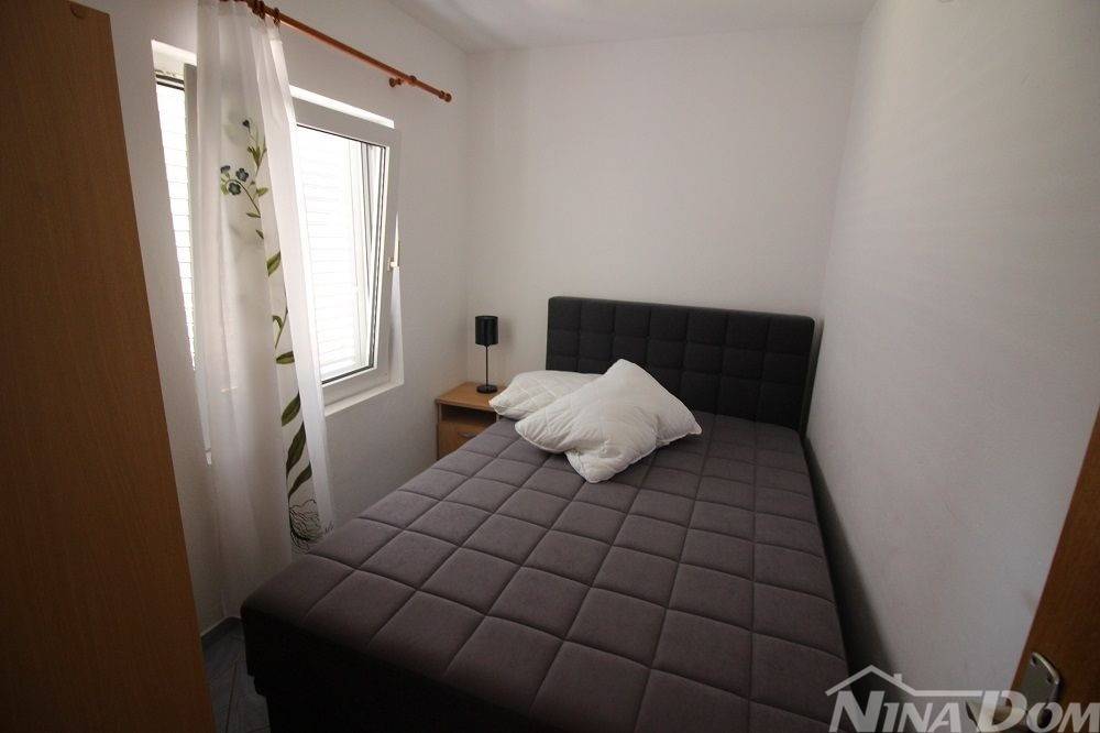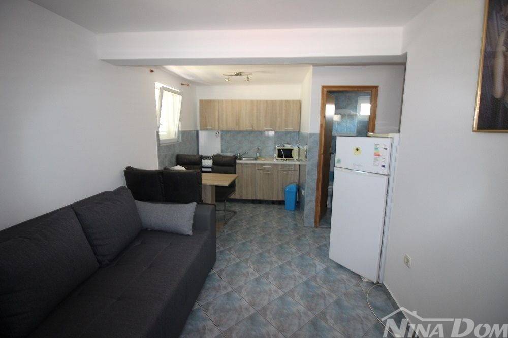 Apartmanska kuća u naselju Sridnje Kućice, vanjskih tlocrtnih gabarita 17,12x 18,15 met. Udaljena je od plaže Radovanjica 450 metara. Nekretnina posjeduje 8 apartmana od kojih su 4 jednosobna i 4 dvosobna. Svi apartmani su opremljeni i u funkciji turizma. Vanjski dio je lijepo uređen s prostorom za parkiranje i djelom za druženje s vanjskim roštiljem i pomoćnim ostavama.