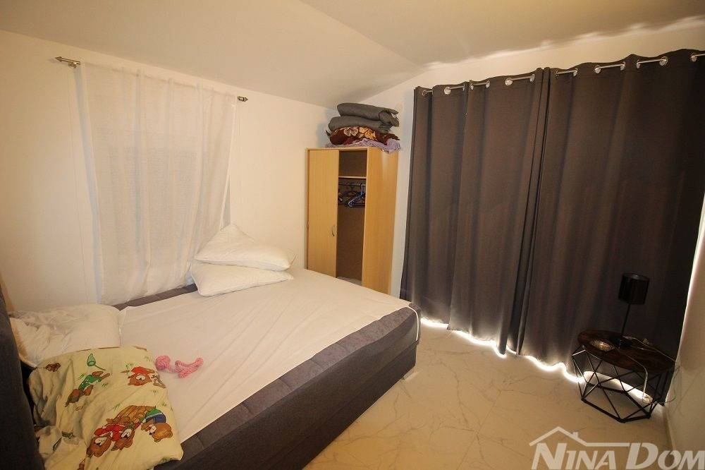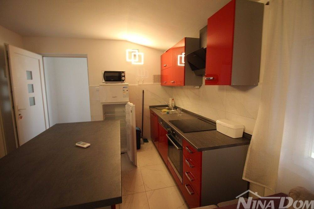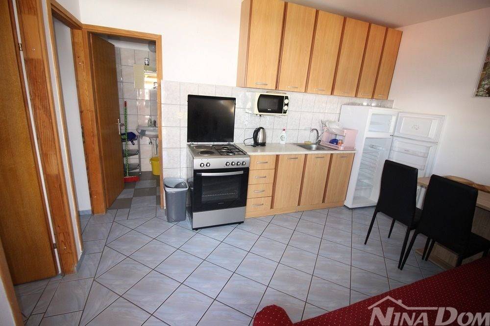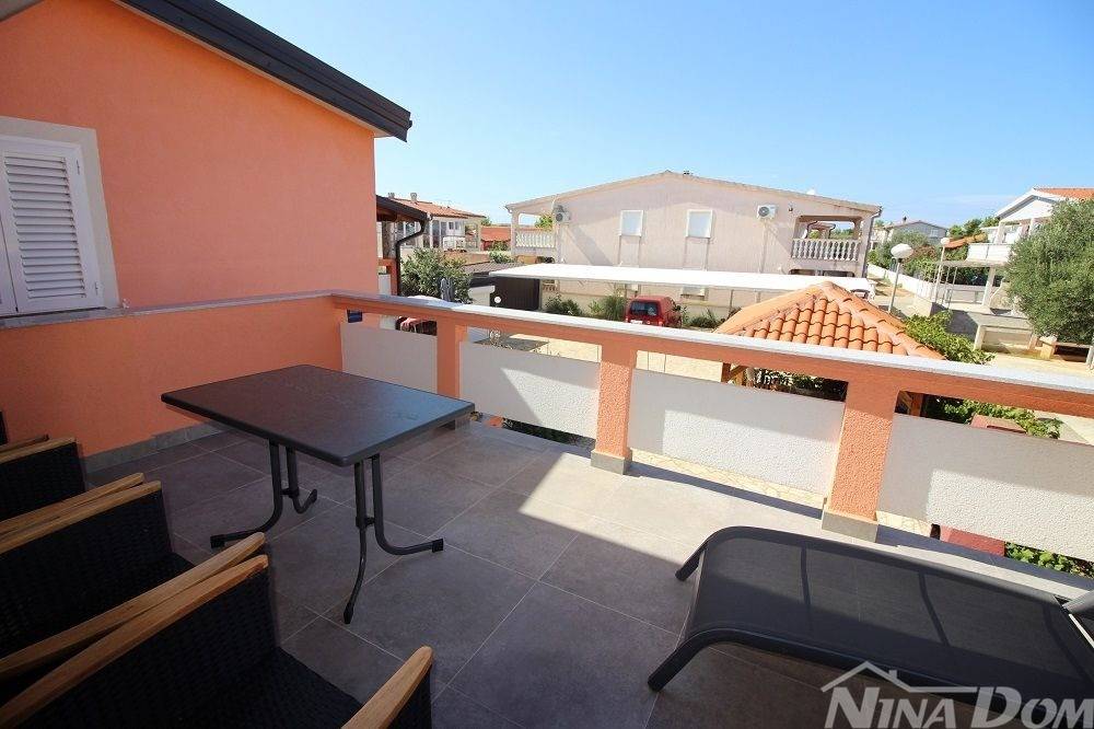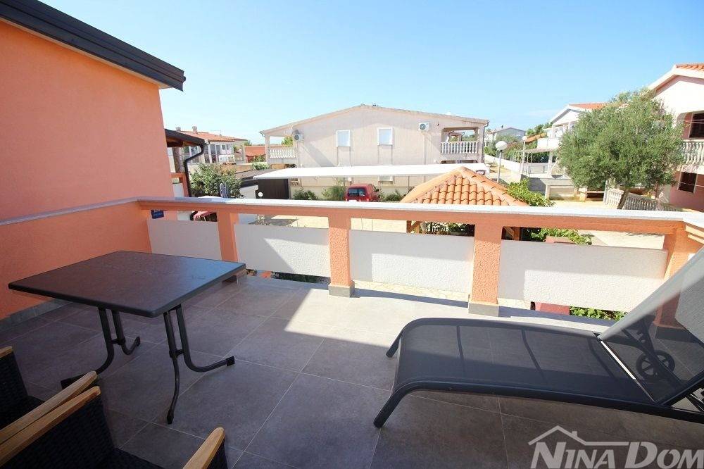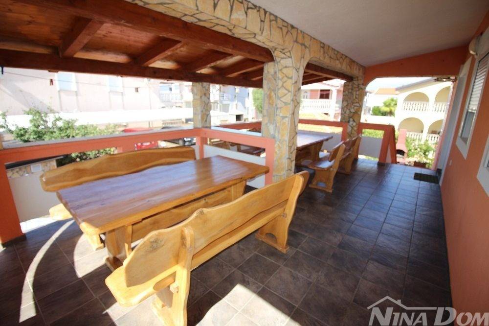 Apartmanska kuća u naselju Sridnje Kućice, vanjskih tlocrtnih gabarita 17,12x 18,15 met. Udaljena je od plaže Radovanjica 450 metara. Nekretnina posjeduje 8 apartmana od kojih su 4 jednosobna i 4 dvosobna. Svi apartmani su opremljeni i u funkciji turizma. Vanjski dio je lijepo uređen s prostorom za parkiranje i djelom za druženje s vanjskim roštiljem i pomoćnim ostavama.