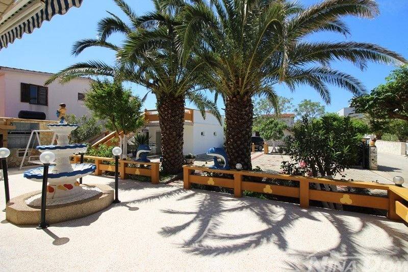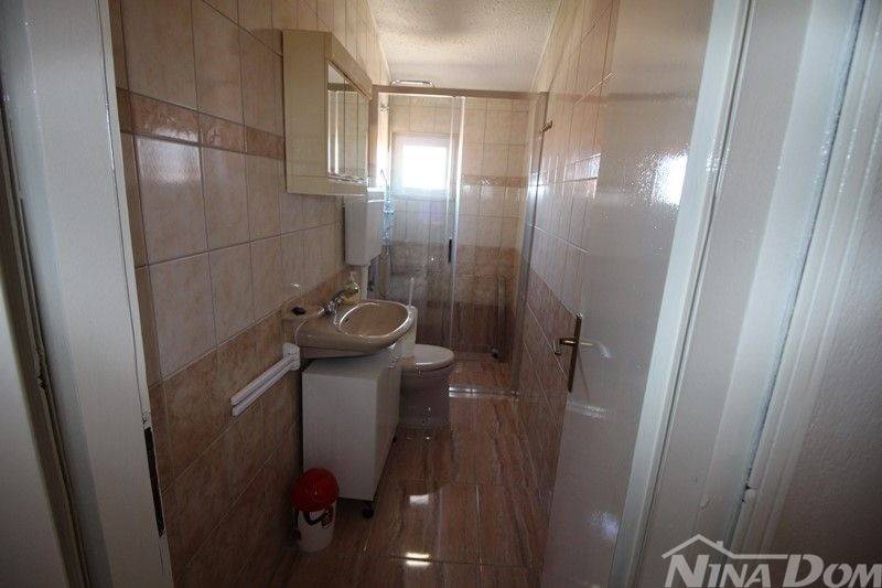 Prizemlje se sastoji od hodnika, tri sobe s svojim kupaonicama, dnevni boravak, kuhinja, velika posebna kupaona i jedna soba bez svoje kupaone. Terasa. Vanjske stepenice ispod kojih se nalaze ostave.