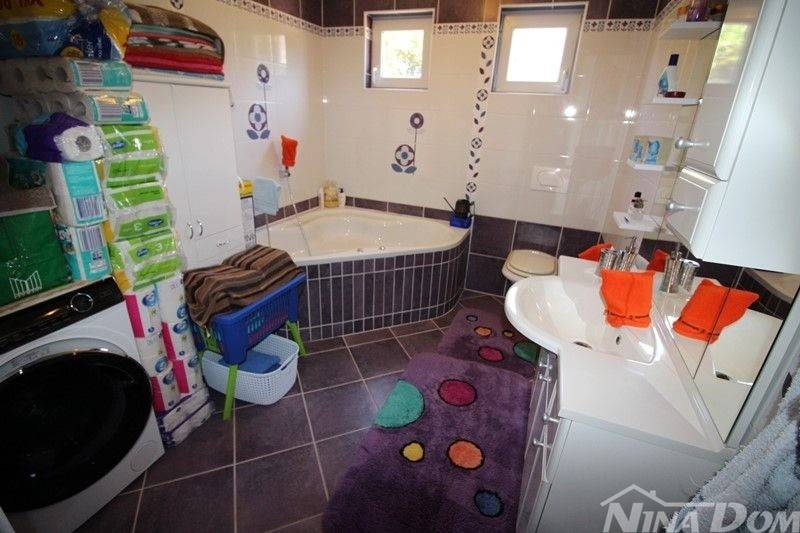 Okućnica lijepo uređena s prostorom za druženja, roštilj, vanjski tuš.