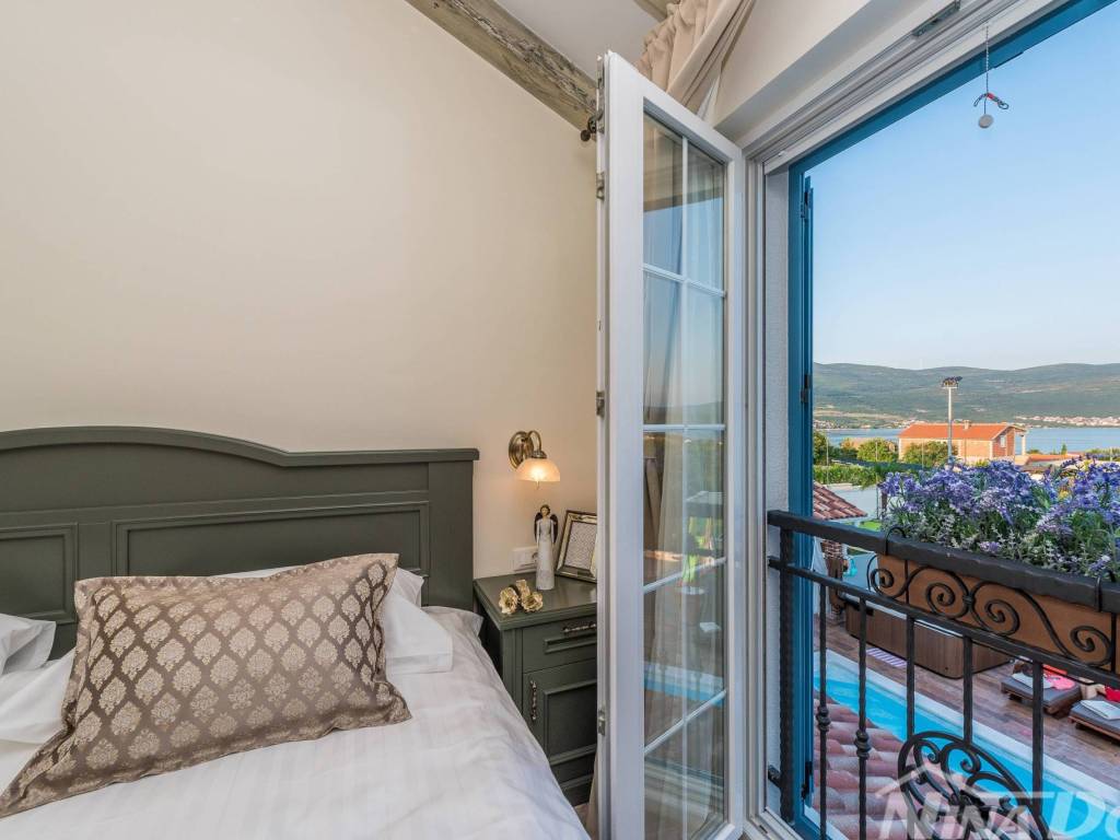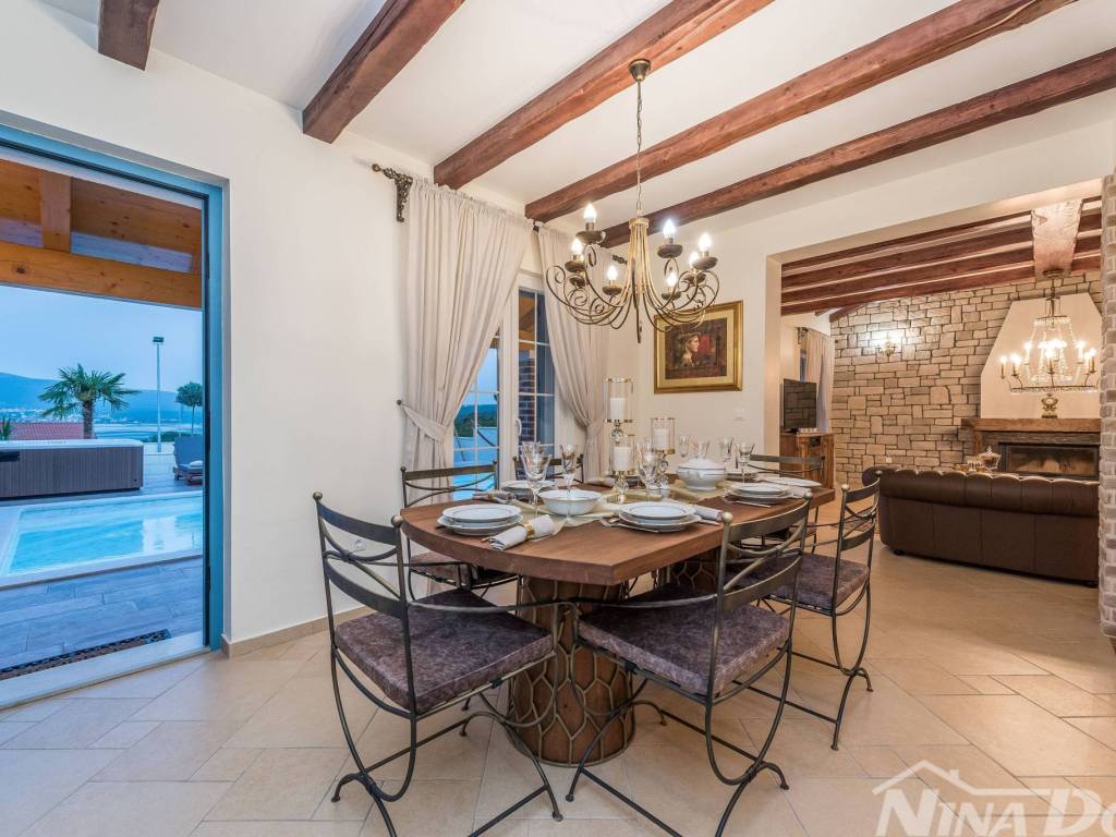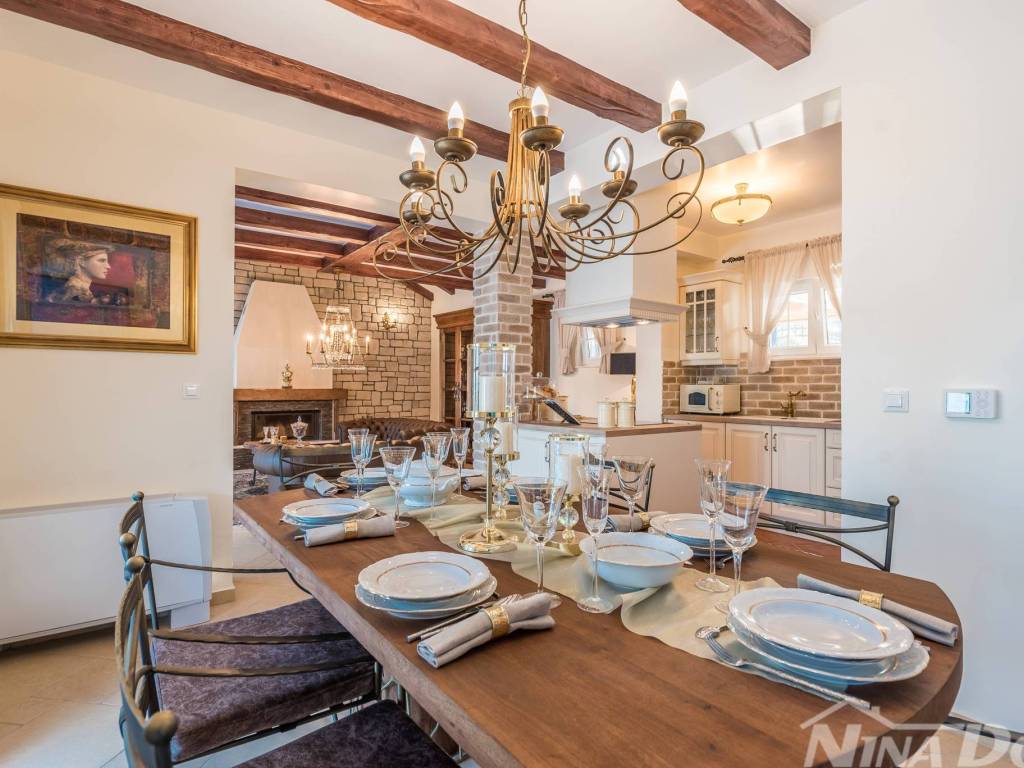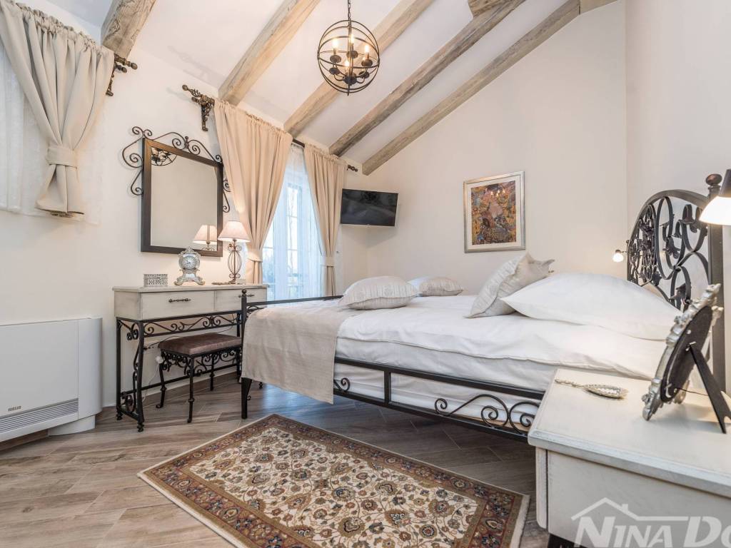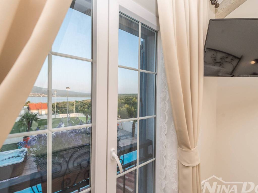 Luksuzna vila u mjestu Pridraga kod Zadra od najbliže plaže je udaljena 300 m. Vila se sastoji od dnevnog boravka, blagovaonice, kuhinje i tri spavaće sobe, od kojih se jedna nalazi u prizemlju, a ostale dvije na prvom katu kuće. Svaka soba raspolaže potpuno opremljenim kupatilom, a u jednom od kupatila nalaze se jacuzzi i sauna. Prizemlje ima direktan pristup terasi i velikom vrtu. U vrtu se nalazi bazen i teniski teren koji se može pretvoriti u teren za nogomet, u vrtu je i dječje igralište. Svi potrebni zabavni i turistički sadržaji su lako dostupni. Ovaj dio Hrvatske dom je i nekim od najljepših nacionalnih parkova kao što su Paklenica, Plitvice, Kornati, Krka i Sjeverni Velebit.. Za dodatne informacije kao i obilazak stojimo vam na raspolaganju. Vilu od Zračne luke Zemunik dijeli 18 km