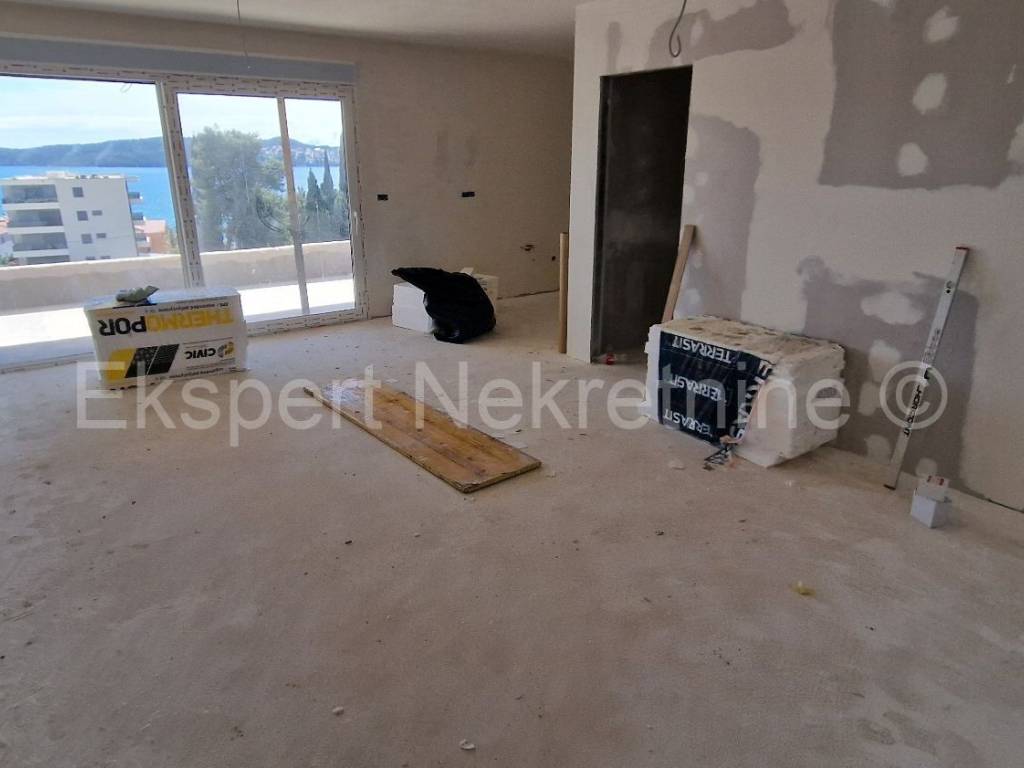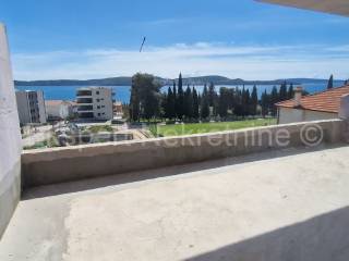 Seget Donji, comfortable three-bedroom apartment 96 m2 (79 m2 apartment plus 17m2 balcony) in a new building with an elevator, on the 1st floor, south-facing, with a large loggia (17 m2) with a sea view in a building in an excellent and quiet location only 200 m from the sea and the beach. The apartment has three bedrooms, one of which has its own bathroom, hallway, bathroom, kitchen with dining room and living room and a large loggia (17 m2) with a beautiful sea view.