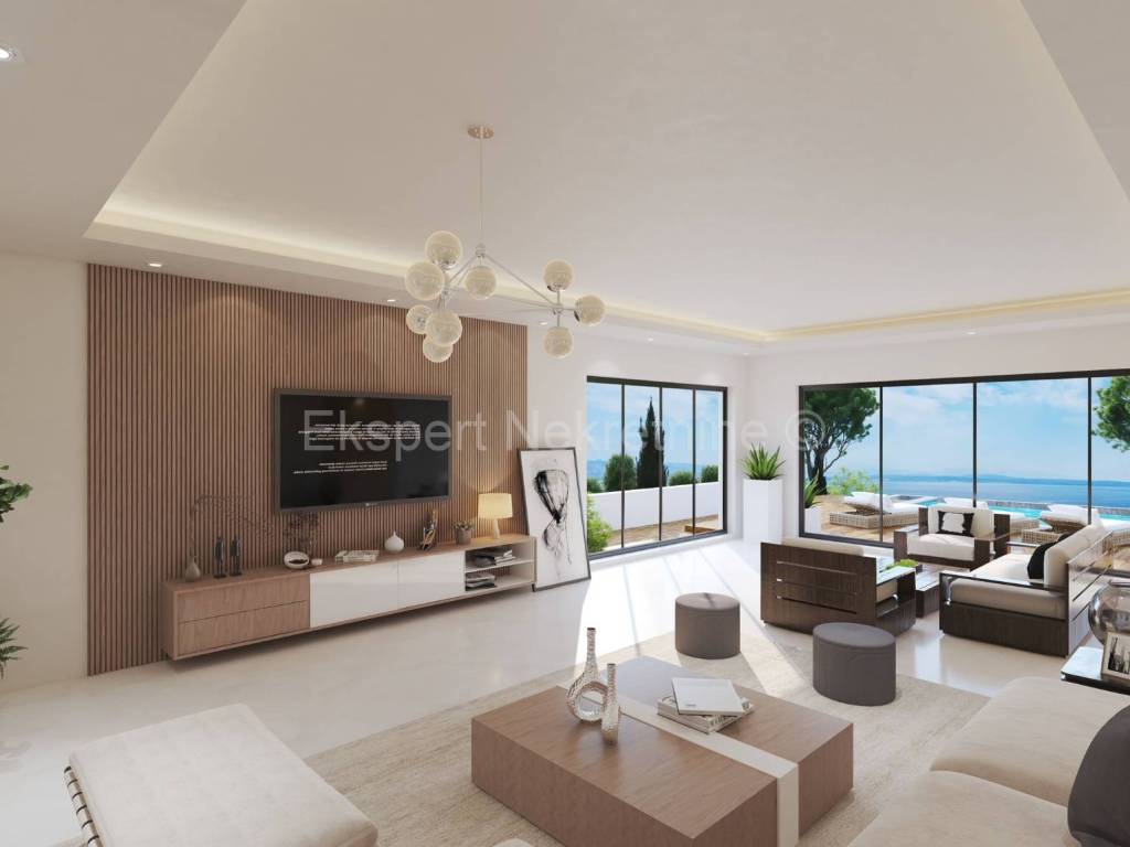 Nekretnina bruto površine 271 m smještena je na parceli od 540 m i pruža nesmetan pogled na more i prirodu koji nije moguće zakloniti budućom gradnjom.Prizemlje je projektirano u open-space konceptu s kuhinjom, blagovaonicom i prostranim dnevnim boravkom koji se otvaraju prema terasi s infinity bazenom. Uz to, tu su i gostinjski WC koji se može prenamijeniti u kupaonicu te spremište.Na katu se nalaze četiri spavaće sobe, od kojih tri imaju izlaz na terasu s pogledom na more. Tu su i dvije prostrane kupaonice te prostorija za domaćinstvo predviđena kao praonica rublja.Sa sjeverne strane kuće nalazi se terasa koja pruža hladovinu i potpunu privatnost tijekom ljeta, idealna za roštilj i druženje.