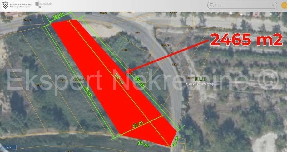 Solin,Priko Vode,građevinsko zemljište 2465m2.Zemljište je pogodno za stambenu ili komercijalnu gradnju.Sa južne strane zemljišta je rijeka Jadro.Širina ukupnog zemljišta je 18 m s jedne strane, 33 m s druge strane, dok je ukupna dužina 110 m.U naravi se prodaju tri parcele.