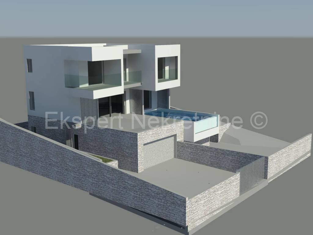 Čiovo, Okrug Gornji, luxury villa 344m2 (gross) with garage and pool, first row to the sea.