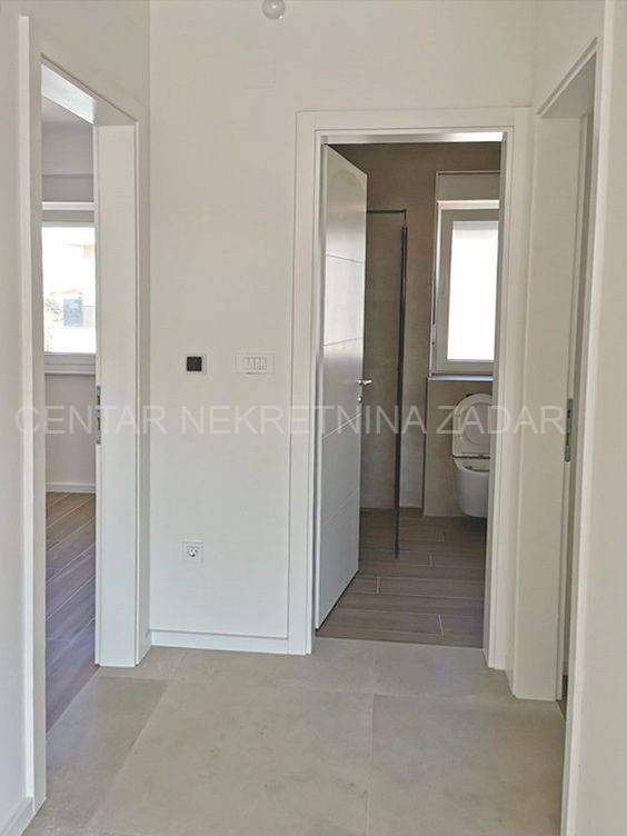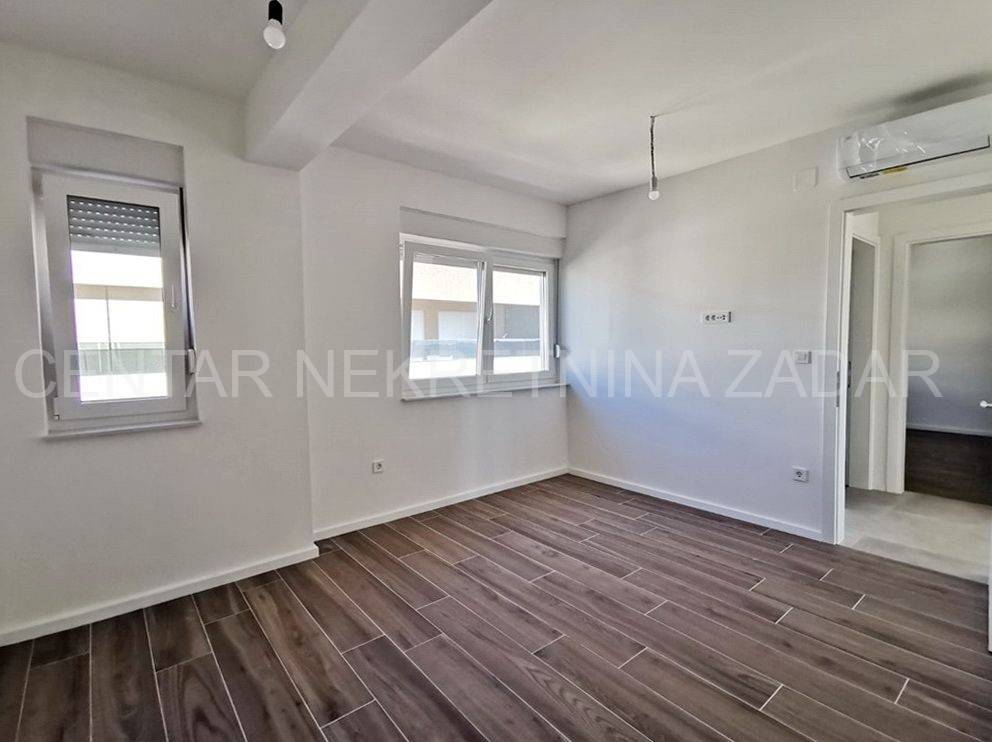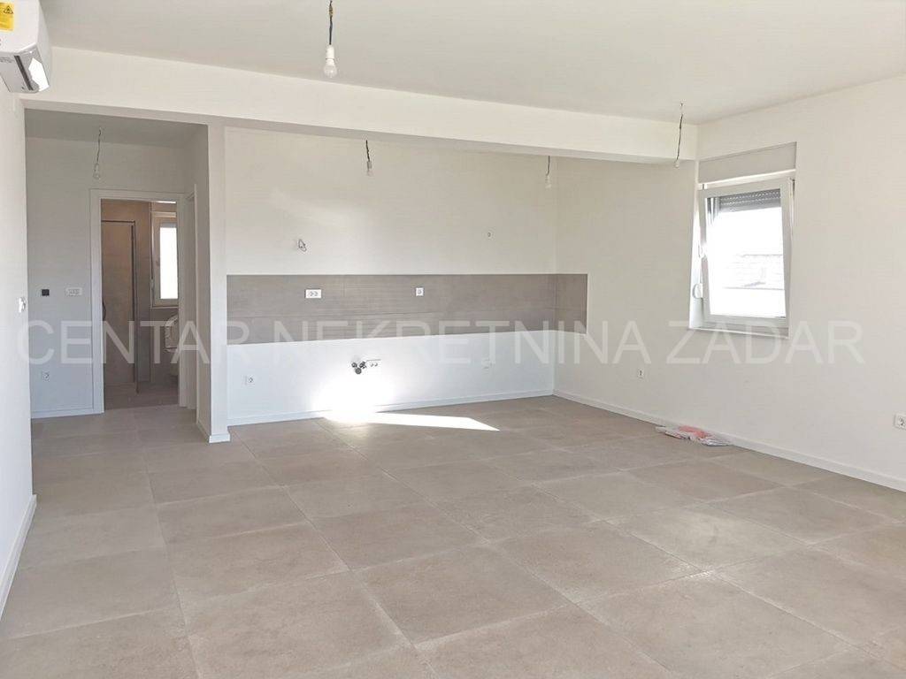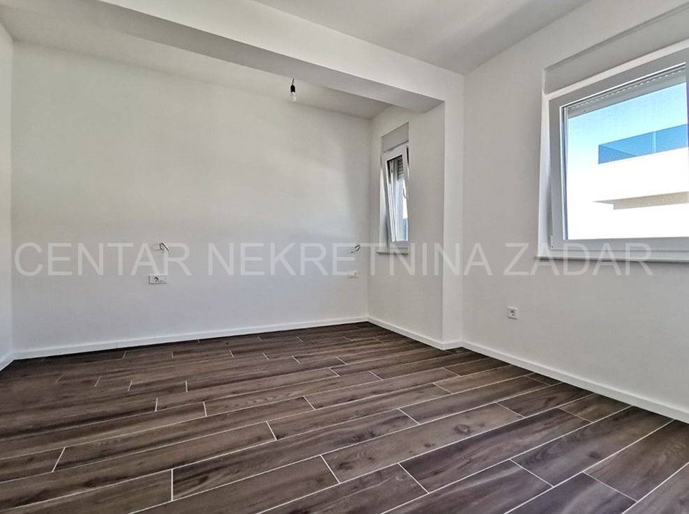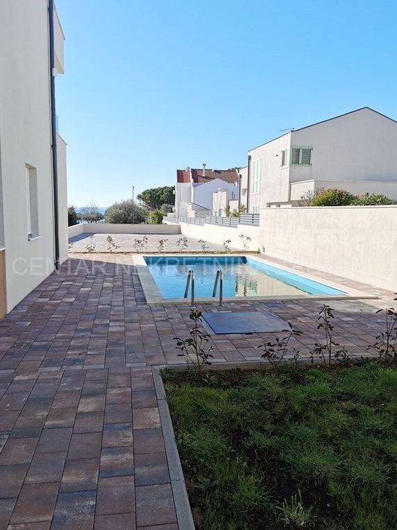 For sale is a luxurious penthouse with a roof terrace and a jacuzzi on the 2nd floor of a residential building with a total of ten residential units. The apartment has 86.46 m2, i.e. 80.03 with the coefficient, and consists of a hallway (5.76), living room with kitchen and dining room (36.84 m2), bathroom (4.29 m2), hallway (2.59 m2), two bedrooms (10.35 m2 and 13.77 m2) and a covered terrace with a sea view (12.86 m2, i.e. 6.43 m2 with coefficient). The apartment also has its own roof terrace of 88.92 m2 or 22.23 m2 with coefficient. There is a jacuzzi on the roof terrace, and the terrace offers a beautiful view of the sea and the Zadar channel! The apartment also has one outdoor parking space (12.50 m2, i.e. 2.50 with coefficient) within the property. This building also has a swimming pool for tenants in the yard, and during the design, care was taken to place it on a part of the field where the intimacy of the apartments is not disturbed.Construction by a reliable investor, high quality, functional and carefully designed floor plans. Each residential unit will have a smart Inverter air conditioning heating and cooling system, underfloor heating in the bathroom, top-quality interior carpentry with full stocks of modern design and lines, modern six-chamber PVC exterior carpentry with iso triple-layered glass and Low-e coating on the outside of renowned European manufacturers. The exterior carpentry is equipped with electrically operated ALU shutters and integrated mosquito nets. Top-quality sanitary equipment from renowned EU manufacturers, first-class parquet and ceramics, preparation for smart installation, smart key card for entering the building. The building has a video intercom, a charging station for electric vehicles, a thermal facade, and all structural elements are constructed according to the highest standards in earthquake engineering (9 seismic zones).The immediate proximity to the sea (100 m), the sea view, and the simplicity and functionality of the floor plan, along with luxury and comfort, are the features of this project that will satisfy even the most demanding customers.