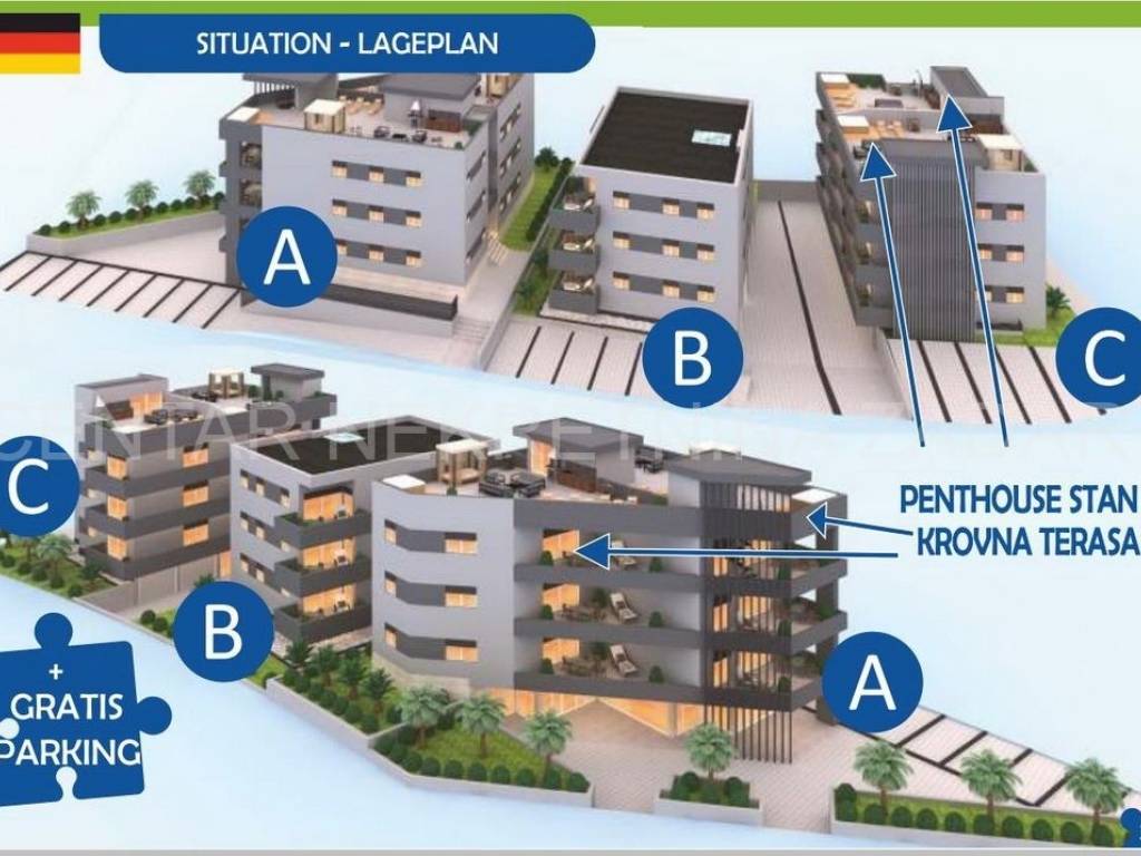 A two-bedroom penthouse in Sukošan is for sale, located in a new building just 100 m from the sea and the beach.The apartment with a floor area of 90.79 m is located on the second floor of the building and consists of an entrance hall, hallway, kitchen with dining area, living room, hallway, two bedrooms, bathroom, toilet and a 22.87 m loggia. It has a 69.74 m roof terrace, staircase and one free parking space.The completion of construction is planned in the first months of 2026. The building will have an earthquake-resistant reinforced concrete structure. The external walls will be insulated with 10 cm of thermal insulation, and in addition to classic plaster, it will also have a water-repellent finishing plaster in color. The apartment will be equipped with high-quality PVC doors and windows with ISO glass, electric ALU roller shutters and roller mosquito nets. All this equipment provides the apartment with an A+ energy certificate.The apartment will have a separate water and electricity connection, and the interior and exterior lighting will be solved with LED technology. The apartment will be equipped with underfloor heating, and the water will be heated using solar systems on the roof and an electric boiler. Sanitary and sanitary equipment from renowned European manufacturers will be installed. The apartment will be fitted with high-quality porcelain tiles. The buildings will be secured with video surveillance to which the apartment owners will be given access.Sukošan is a place 10 km southeast of Zadar, located in the spacious Zlatna luka bay. It is very easily accessible - it is connected to Zadar and Biograd na Moru by the Adriatic Highway, while the airport is less than 15 minutes away by car. Sukošan has an elementary school, two kindergartens, shops, a clinic and all the necessary facilities for everyday life. Well-maintained beaches, excellent gastronomic offer and proximity to tourist destinations have defined Sukošan as an ideal place for a vacation, and thanks to Marina Dalmacija it has become a true paradise for boaters.For additional information, please call 099/325-2763.