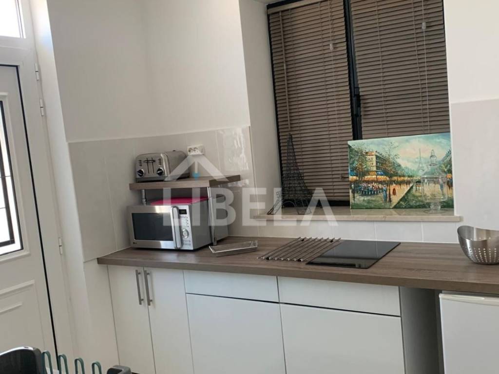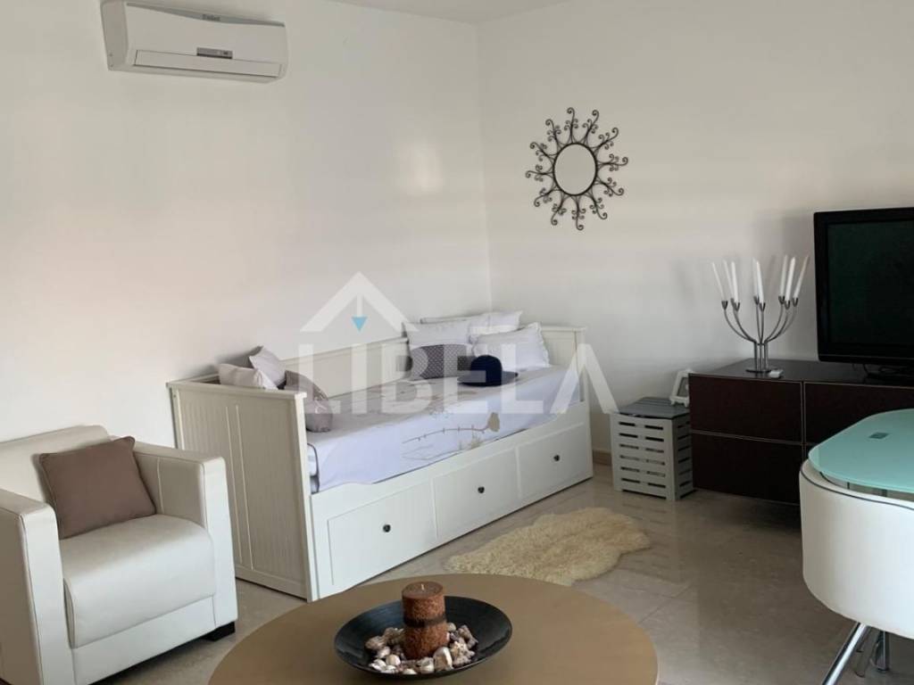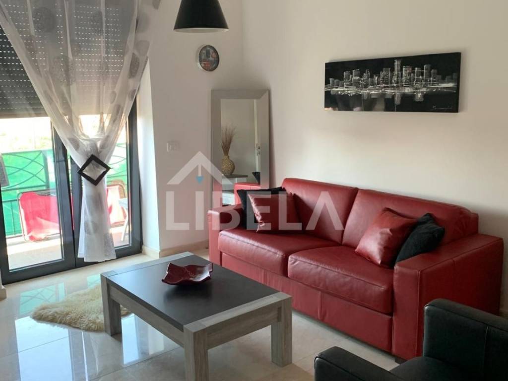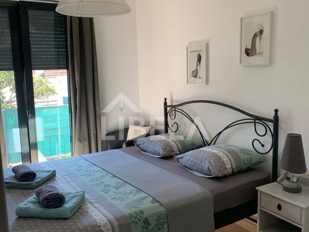 Apartman je potpuno namješten i opremljen kvalitetnim namještajem i aparatima Sastoji se od ulaznog prostora, dvije kuhinje i dvije kupaonice, tri spavaće sobe, dnevnog boravka i dvije terase -jjjednaje površine 27 m2 i na nju se izlazi iz spavaćih soba, a druga je površine 20 m2, natkrivena pergolom i na nju se izlazi iz kuhinje.