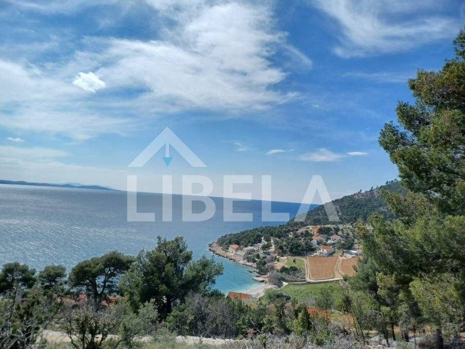 Građevinsko zemljište na južnoj strani otoka Brača, uvala Vela Farska, s veličanstvenim pogledom na Hvar, 150m od mora, 11 km od Bola.2 parcele 2000 m2 ukupno, 250 EUR/m2