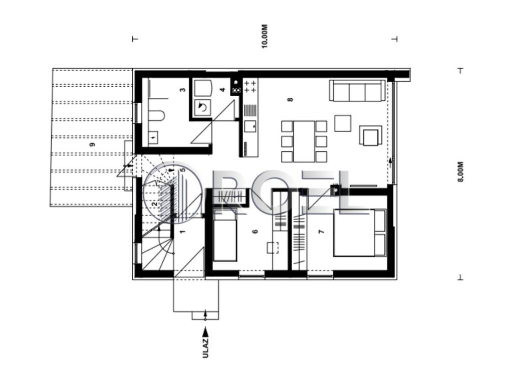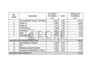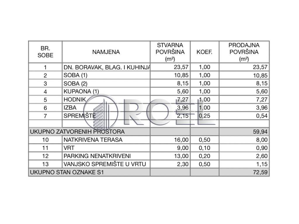 A three-room apartment with a total gross floor area of 71.44 m2, located in Rudeš, on the ground floor of a new building with a total of two floors. The building was built in 2024.