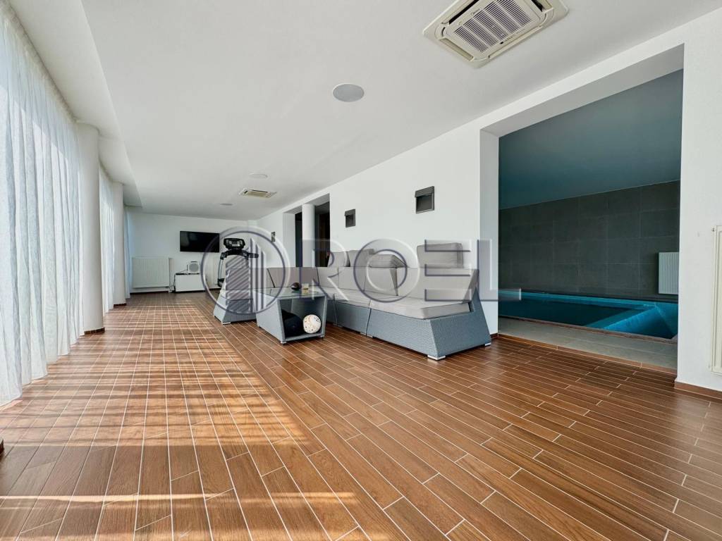 Prizemlje vile krije wellness oazu: unutarnji bazen, sauna, moderno opremljen fitness, te izlaz na prostranu terasu sa sunčalištem i relax zonom. Posebna atrakcija je zid tuš koji uz noćnu ambijentalnu rasvjetu vrta stvara čaroban ugođaj. Tu se nalazi i elegantna spavaća soba s vlastitom kupaonicom te profinjeni vinski podrum s cigar sobom savršeno mjesto za opuštanje i uživanje.