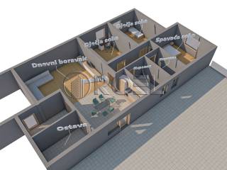 The building has two floors, with a total area of 793 m2. The building plot area is 1,761 m2, of which 43% is used for vehicular and pedestrian areas. The rest of the building's floor area is green (477 m2). The building is made entirely of reinforced concrete to high standards, protected from noise and with high energy efficiency.
