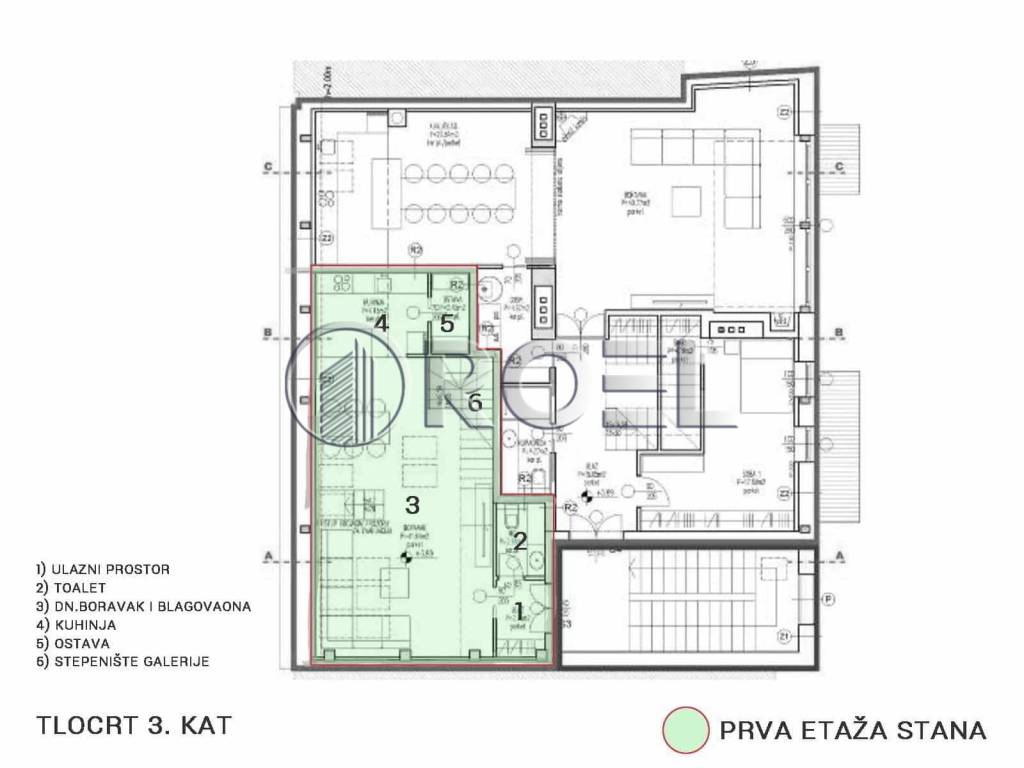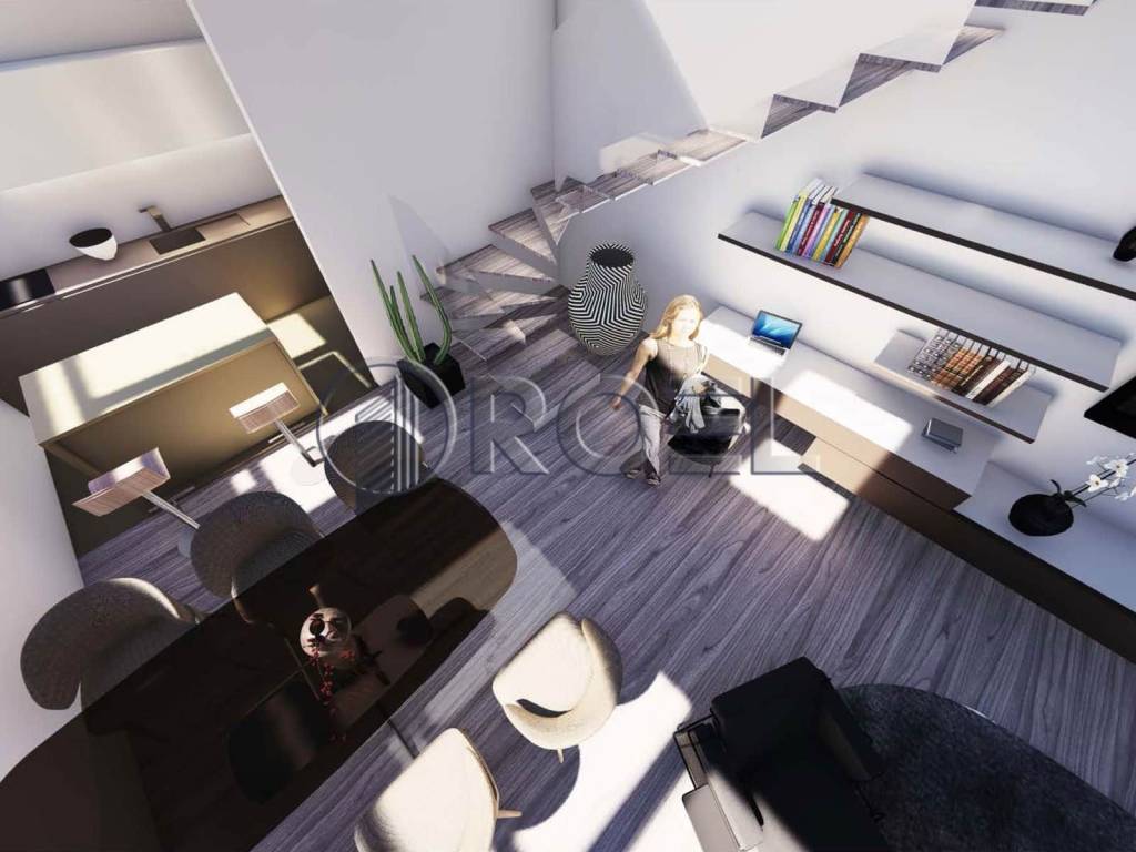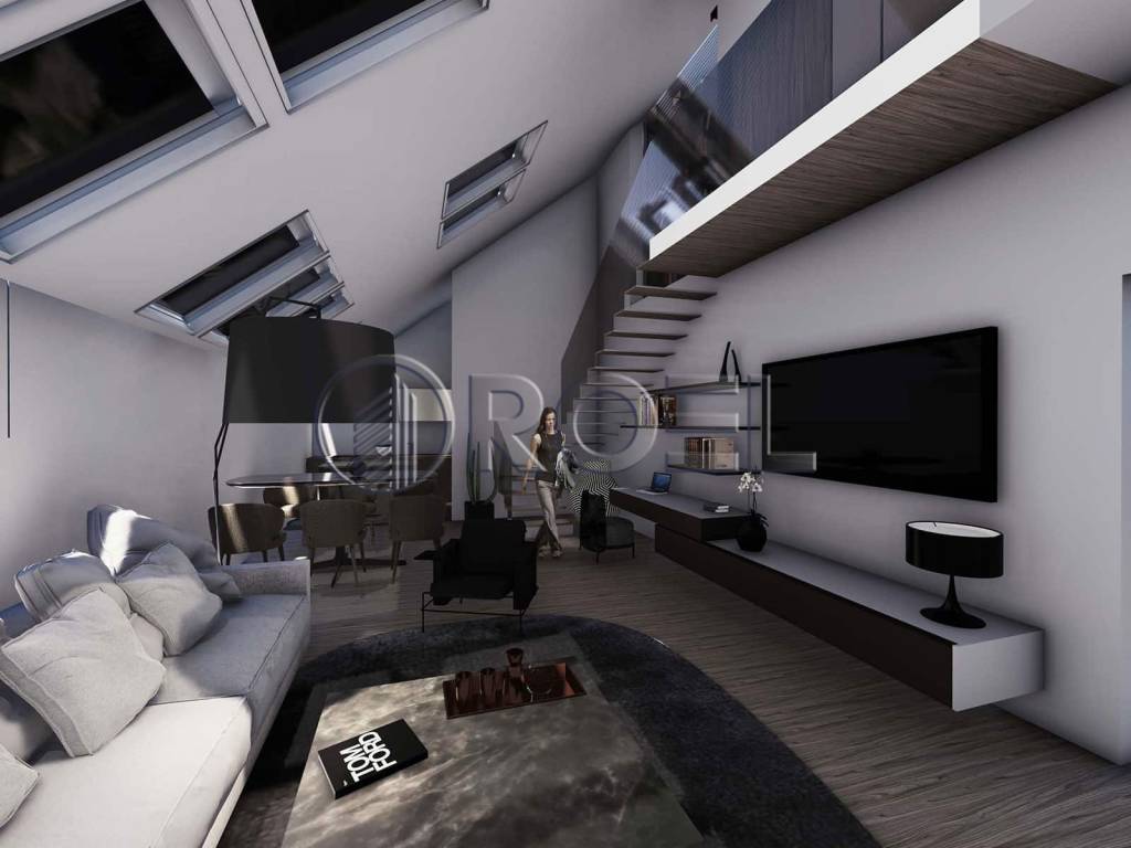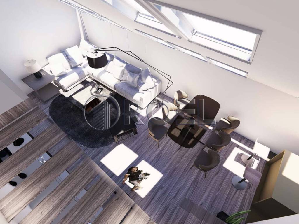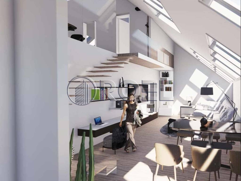 Moderan dvoetažni trosobni stan u Centru Zagreba, NKP 92.5 m. Odličnog rasporeda, visokog stropa te s kosinama koje ovaj stan čine posebnim, a ne smanjuju prostor nego u ovom slučaju osiguravaju dodatni volumen te veliku količinu svjetla koje dopire kroz velike prozore. Na prvoj etaži nalazi se ulazni hodnik, kupaonica s wc-om namijenjena za goste, prekrasan dnevni boravak s kuhinjom i blagovaonom te stepenište koje vodi na drugu etažu, odnosno galeriju. Drugu etažu čini galerija, odnosno radna soba, dvije spavaće sobe od kojih je jedna gostinjska, a druga master spavaća s pomičnom garderobom te kupaonica s wc-om i dva umivaonika. Orijentiran je većinom na jug, a manjim djelom na zapad i sjever. Cijena stana u trenutnom polu roh-bau stanju: 3.500 /m Cijena stana u dovršenom stanju: 4.500 /m LOKACIJA: Ova lokacija i sam stan po sebi, budućem vlasniku pružaju život najviše kvalitete i jedinstven doživljaj života u Zagrebu. Nalazi se u samoj gradskoj jezgri, nekoliko minuta hoda od Ilice i Trga bana Josipa Jelačića. U blizini HNK, poznatih restorana i kafića, crkve, tržnice, trgovine, muzeja, muzičke akademije, fakulteta te ostalih sadržaja bitnih za život. Nalazi se u tramvaj zoni.