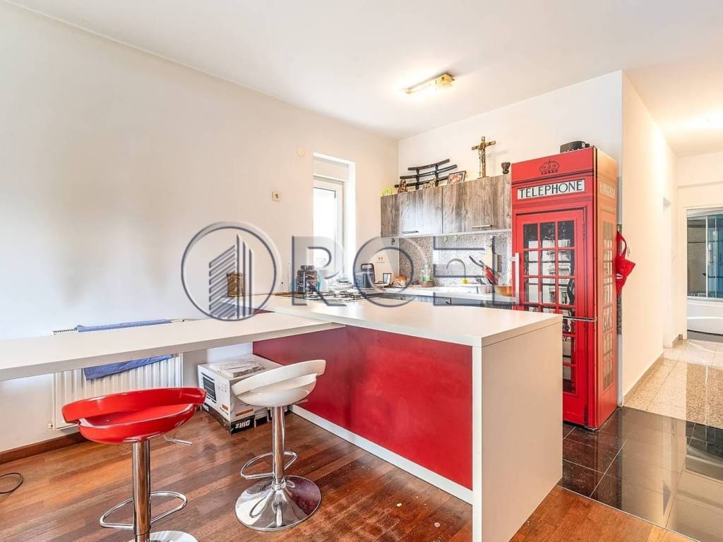Odličan peterosoban stan na Sv. Duhu, NKP 112 m2, u manjoj stambenoj zgradi sa samo tri stana. Smješten u prizemlju s izlazom na vrt s pripadajućim vanjskim parkirališnim mjestom neto korisne površine 11,50 m2 u dvorištu zgrade. Sastoji se od ulaznog hodnika, hall-a, dva dnevna boravaka s kuhinjom, dvije kupaonice s wc-om, tri sobe te dvije terase. Grijanje etažno plinsko centralno, a orijentacija istok-zapad. Stan je klimatiziran. Nalazi se neposrednoj blizini glavne ceste, autobusne postaje, dućana. Potpuno tiha i mirna lokacija okružena zelenilom. Ostale informacije na upit.