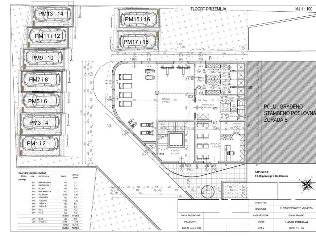 Planirana oprema: bešumni liftovi Metus, zajednički prostori zgradeobloženi su kvalitetnom keramikom i kamenom, kvalitetna PVC 6 komornastolarija sa troslojnim IZO staklima, kamenim klupičicama, komarnicina prozorima, video portafonu, kvalitetna unutarnja stolarija saširokim dovratnicima, ulazna protuprovalna i protupožarna vrata safutranim štokovima, kvalitetna keramika 1. klase od renomiranihproizvođača uz više izbora po želji kupaca, podno grijanje u svimprostorijama stana kao i hlađenje klimatizacijom u svim prostorijama.Uz svaki stan su pripadajuća dva parkirna mjesta.Početak gradnje je bio u tranju 2025 godine a predviđeni završetak radova i useljenje sa dobivenom uporabnomdozvolom je u mjesecu ožujku 2027.g.