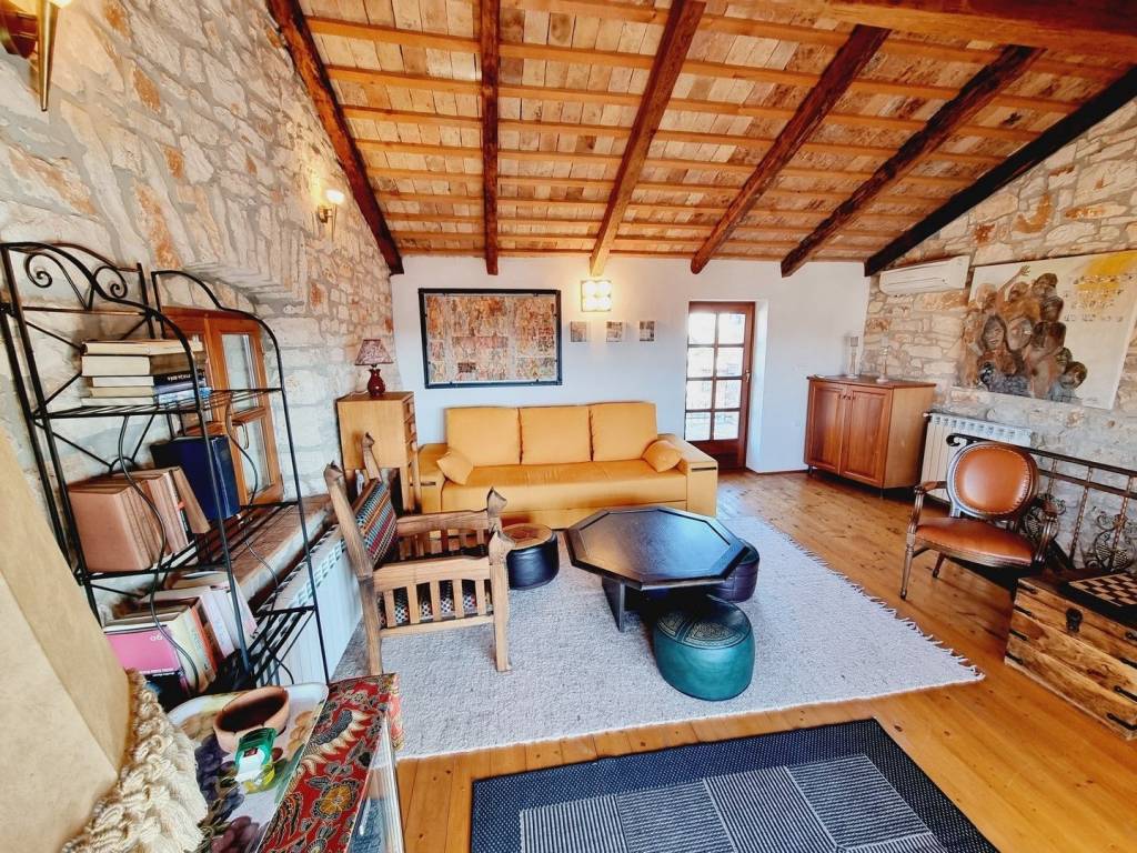 A charming traditional stone house is for sale in Vabriga, just a 1.5 km walk from the sea. The house covers an area of 100 m2, extending over the ground floor and two additional floors, with an impressively landscaped garden with a swimming pool. Its appeal is further enhanced by the abundance of decorative elements that give it an attractive charm.