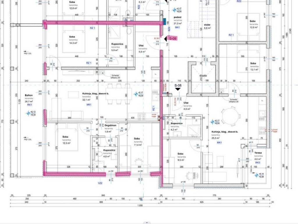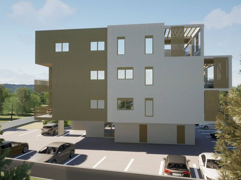 In Tar, not far from the center, a new building with 13 apartments is being built. Apartment S9 of 115.20 m2 is located on the 2nd floor of the building and consists of a hallway, kitchen with dining room and living room, three bedrooms, two bathrooms, storage room and a balcony of 26.7 m2. Electric underfloor heating in the bathroom, and air conditioners will be installed in the rooms and living room. Quality ceramics will be installed in the living room and bathroom and parquet in the bedrooms.On the ground floor of the building there is a storage room of 3.5 m2, and two parking spaces.Construction has begun, completion of construction in December 2026.