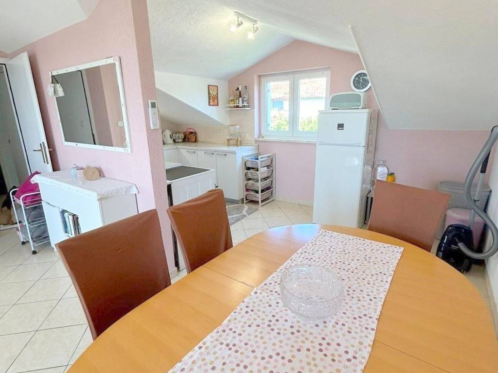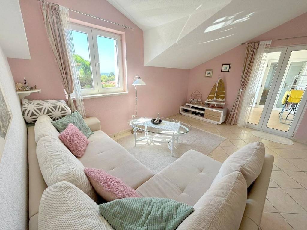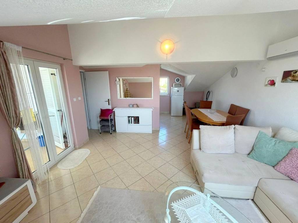 In the fishing village of Vabriga, not far from the beach and the sea, an apartment is for sale on the 2nd floor, i.e. the attic, with a wonderful view of the sea and nature. The apartment consists of a staircase leading to the apartment, a kitchen with a dining room and a living room, two bedrooms, a bathroom and a spacious covered terrace with a view of the sea.The apartment is heated and cooled with air conditioners, it is sold with furniture and appliances.