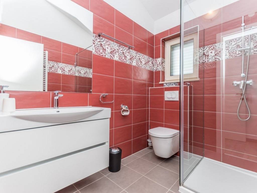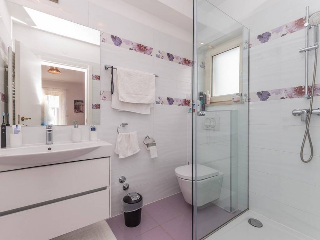 Upstairs there are two more spacious bedrooms, each with its own bathroom and access to the terrace. Here you can enjoy privacy and a beautiful view from every room. The house is equipped with central heating that relies on a heat pump, which ensures a comfortable temperature throughout the year without high energy costs. There is also central cooling for pleasant summer days.