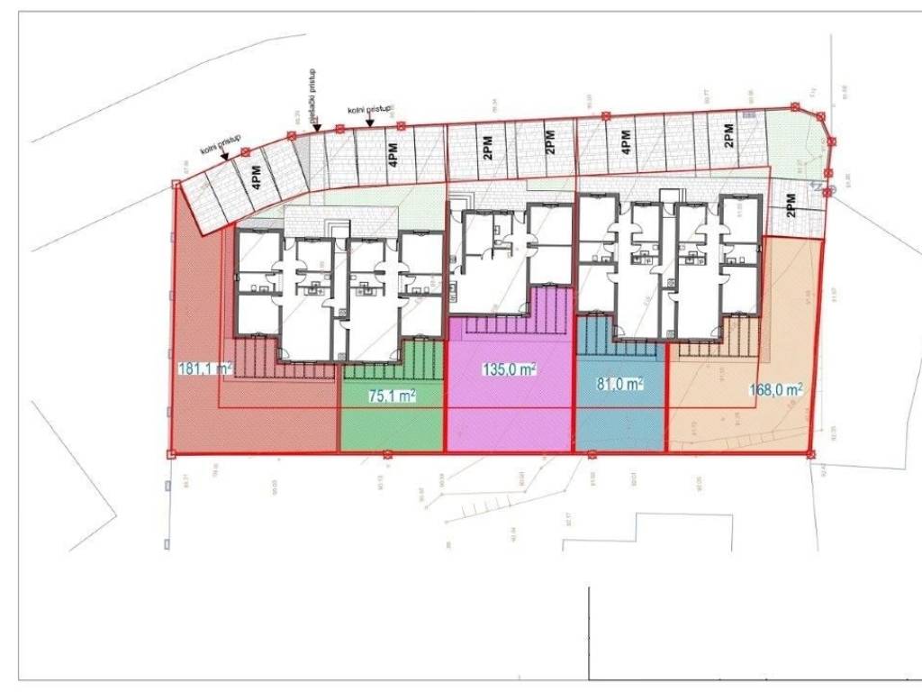 Apartment B, 1st floor with covered terrace 67.2 m2Own entrance only for that apartment; consists of a hall, WC, kitchen, dining room and living room with access to a terrace with a pergola and a yard.Three bedrooms and a bathroom. It also has a storage room and 2 parking spaces.PRICE: 231.200