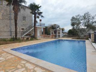A charming rustic house with wooden beams and grouted stone walls gives this house a special charm. On the ground floor there is a kitchen with a dining room, a living room with access to the terrace and a bathroom. The stone staircase leads to the first floor, where there are two bedrooms, one with a spacious terrace and a view of the sea, and a bathroom. On the second floor there are two more bedrooms and a bathroom.In the yard of the house there is a swimming pool and a summer kitchen, as well as a parking lot.