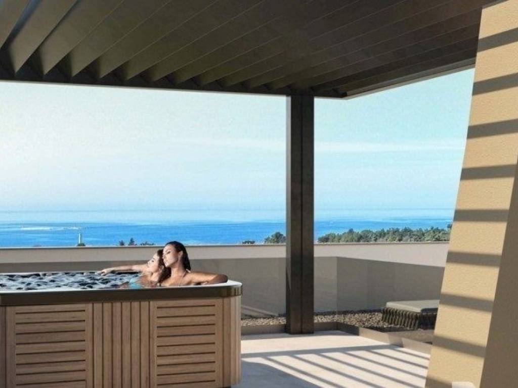 On the first floor, there are 4 bedrooms with private bathrooms and a beautiful terrace of 58 m2 with a view of the sea and the countryside.It is a unique roof terrace with an area of 45 m2, which is partially covered.
