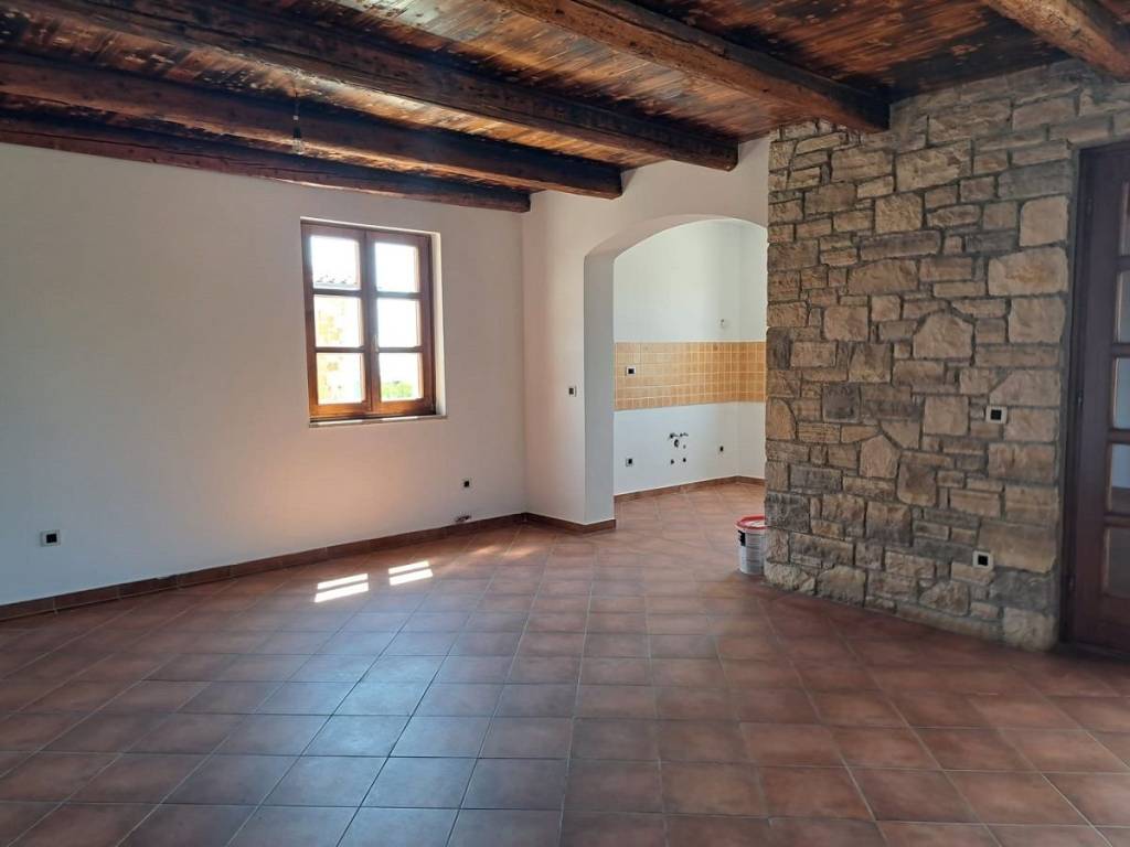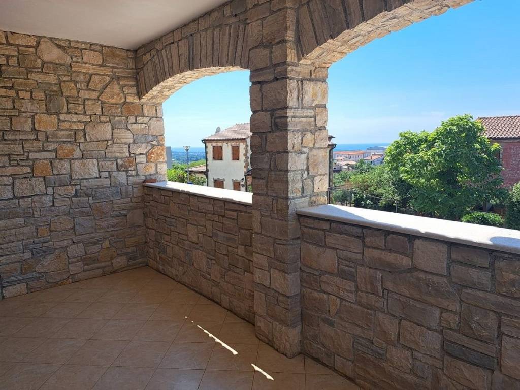 A stone house on three floors with a sea view is for sale.In the semi-basement there is a spacious area for a tavern, studio apartment or fitness.The ground floor consists of an entrance hall, bathroom, living room, kitchen with dining room and living room with access to a huge covered terrace with a view of the sea.On the first floor there are 3 bedrooms, a bathroom and a terrace.It is possible to build a swimming pool in the yard of the house