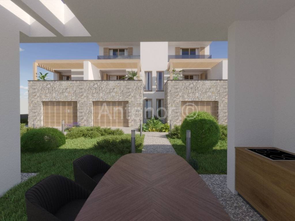 PRIVLAKA - jednosoban apartman, 200 m do mora. Apartman senalazi u prizemlju, a sastoji se od hodnika, spavaće sobe, kupaonice, kuhinje i blagavaone, dnevnog boravka i spremišta. Ukupna tlocrtna površina apartmana je 53,90 m2. Apartmanu pripada 1 parkirno mjesto. Apartmani su useljivi 6/2026. Vlasništvo 1/1.