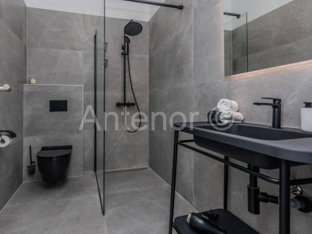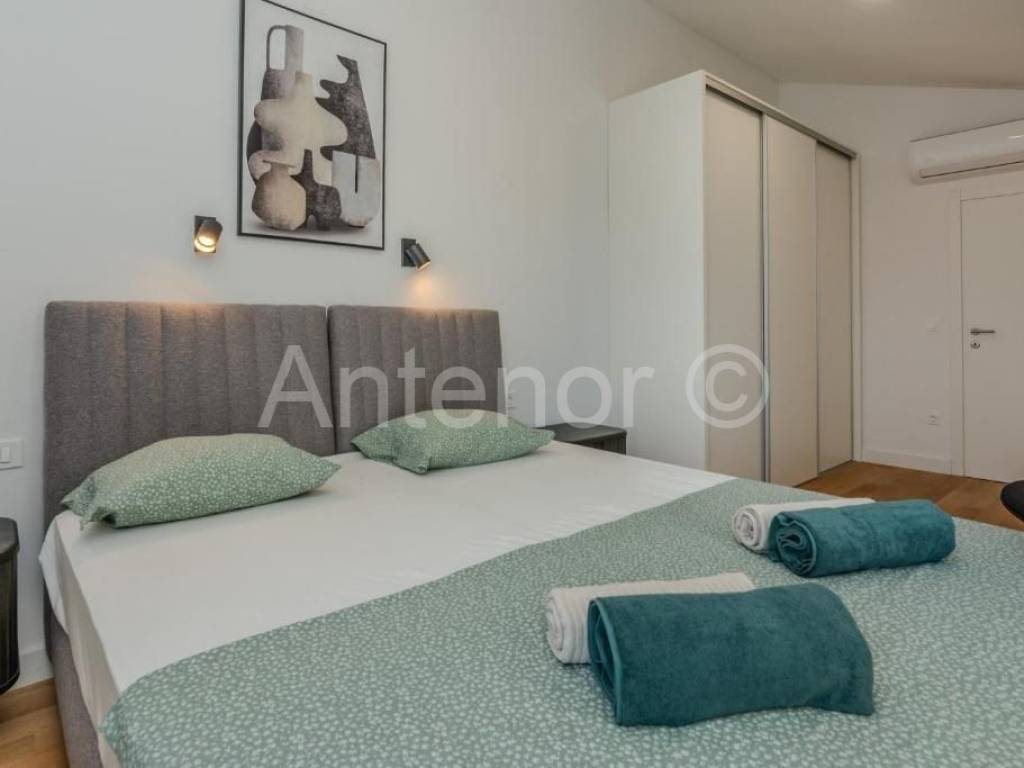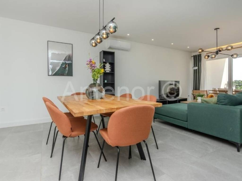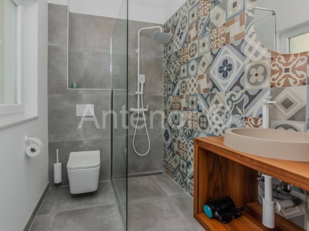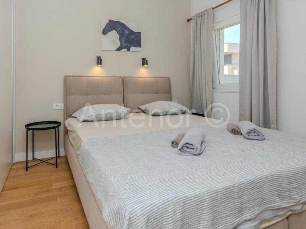 Zaton - prodaje se kuća u nizu tlocrtne površine 116 m2. Stambeni objekt se prostire na dvije etaže - prizemlje i 1. kat.U donjem dijelunalazi se ulazni prostor, ostava, wc, dnevni boravak i kuhinja. Unutarnim stubištem dolazi se na kat gdje se nalazi spavaća soba sa vlastitom kupaonicom i balkonom, te još dvije spavaće sobe, kupaonica, hodnik i balkon s pogledom na more.Apartmanse prodaje u potpunosti namješten.