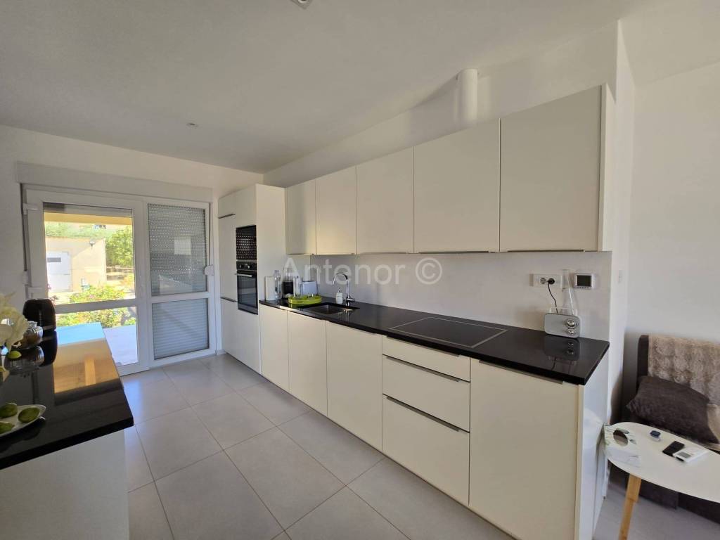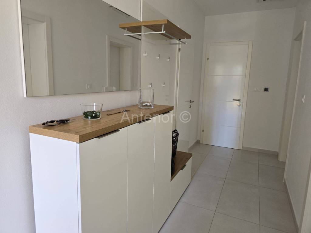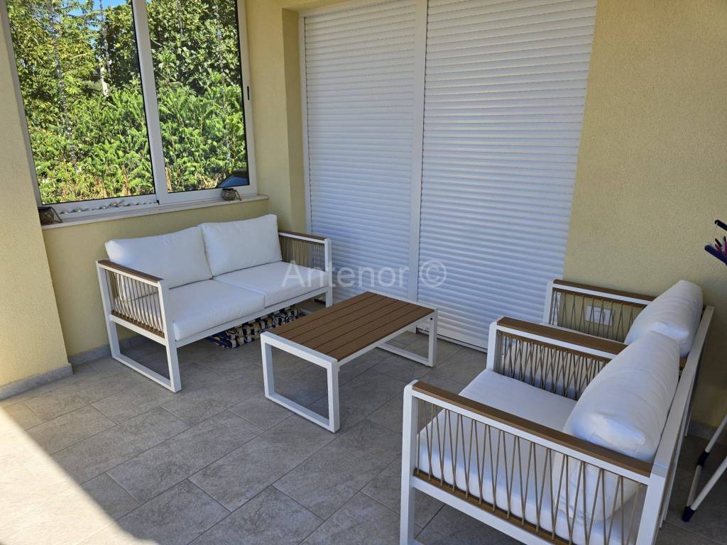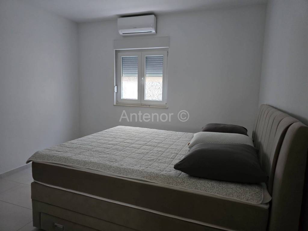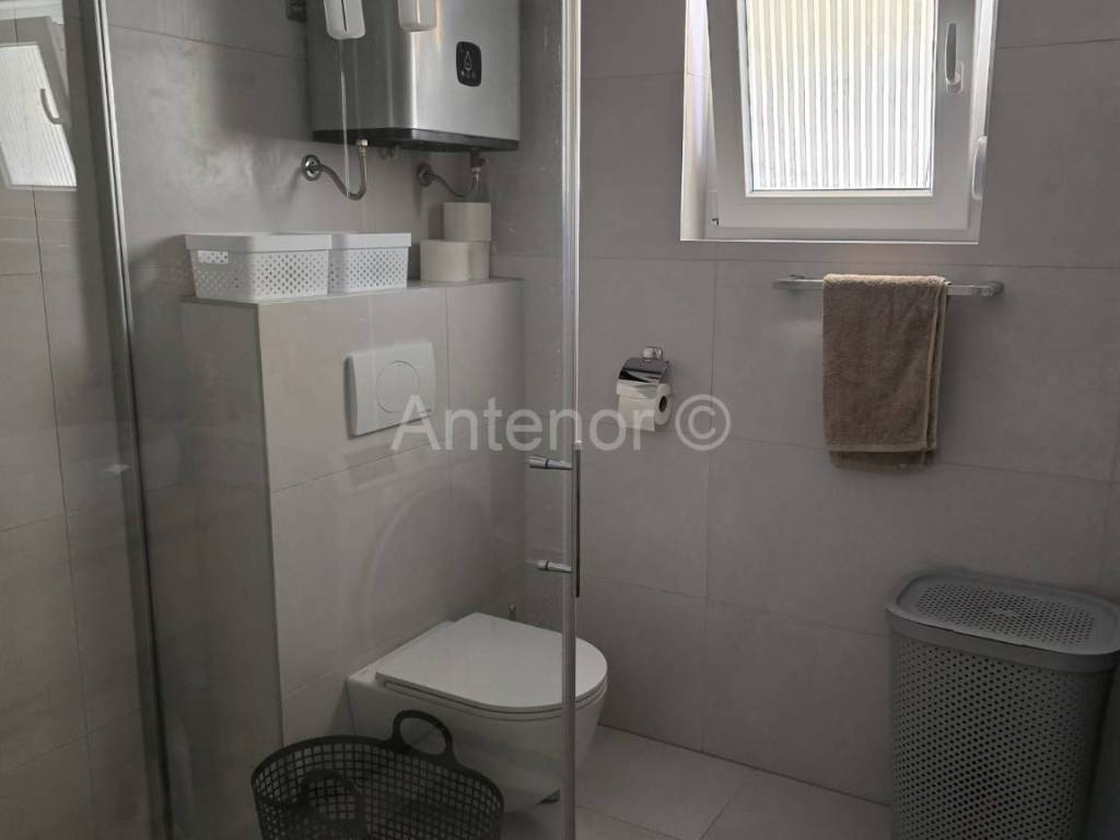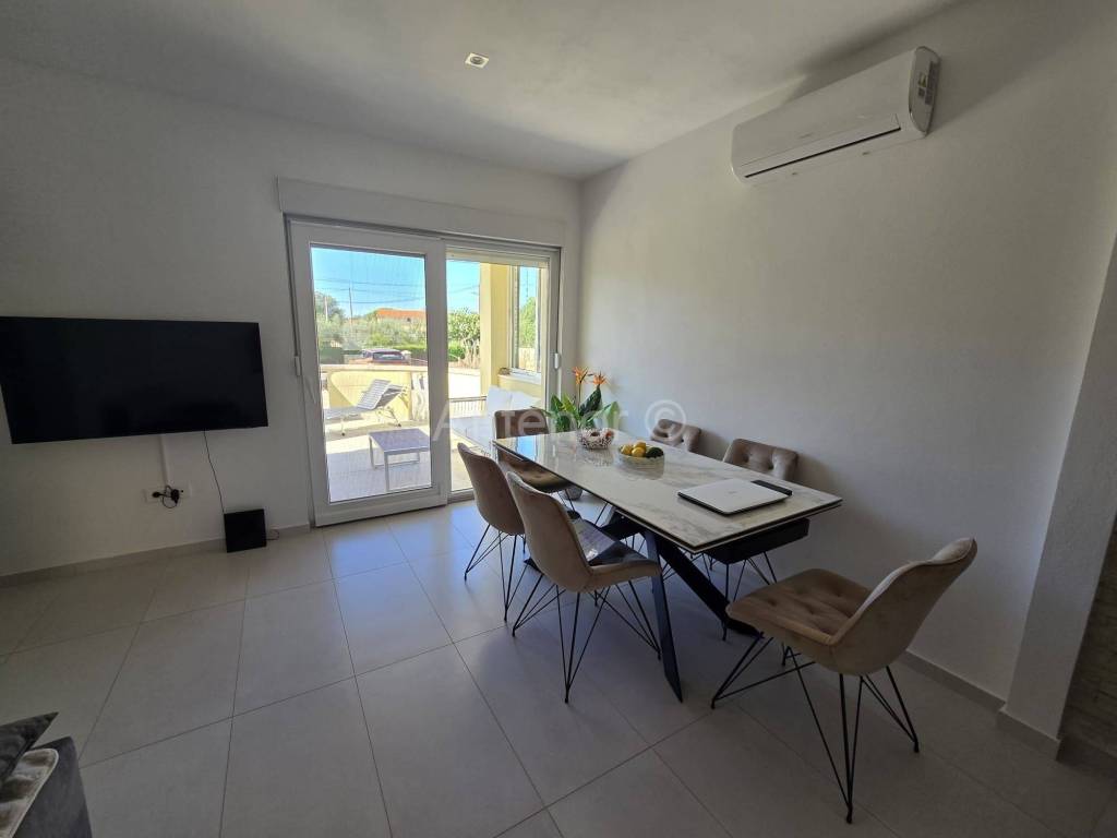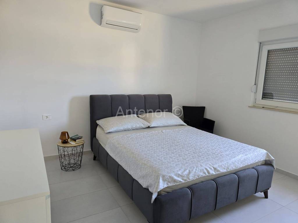 Iz terase se dolazi na prostrano dvorište gdje se nalazi tuš, roštilj,garaža, nekoliko parkirnih mjesta,spremište za alat, vrt i maslinik sa ukupno 12 maslina.
