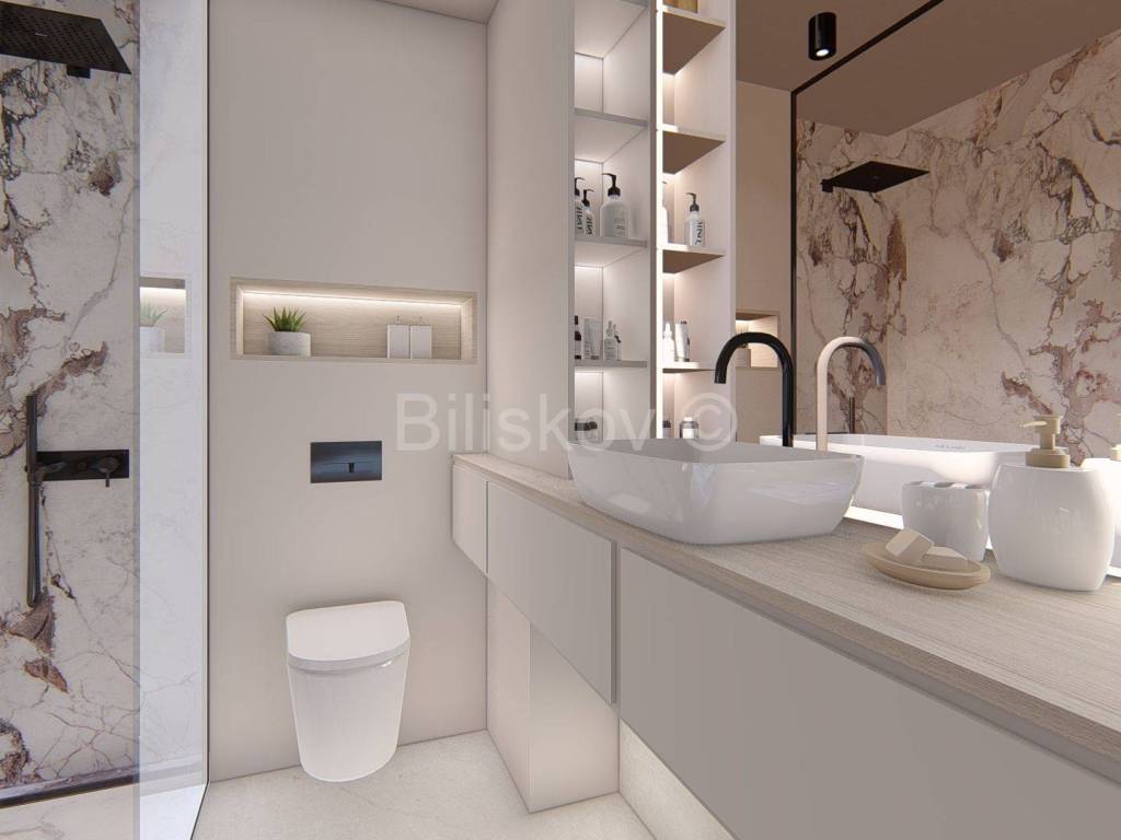 Luxury residential building under construction with open sea view. Innovative architecture, high-quality construction, top-grade built-in materials. A refined property that meets all the needs of modern living. South-oriented, bathed in sunlight for most of the day. These unique apartments are an excellent investment opportunity with great potential for tourist rental. All apartments come fully equipped to the highest standards. This beautiful apartment consists of a living room with kitchen and dining area, two bedrooms, a hallway, a loggia, and a balcony. A garage parking space costs 35,000, while an outdoor parking space costs 15,000.