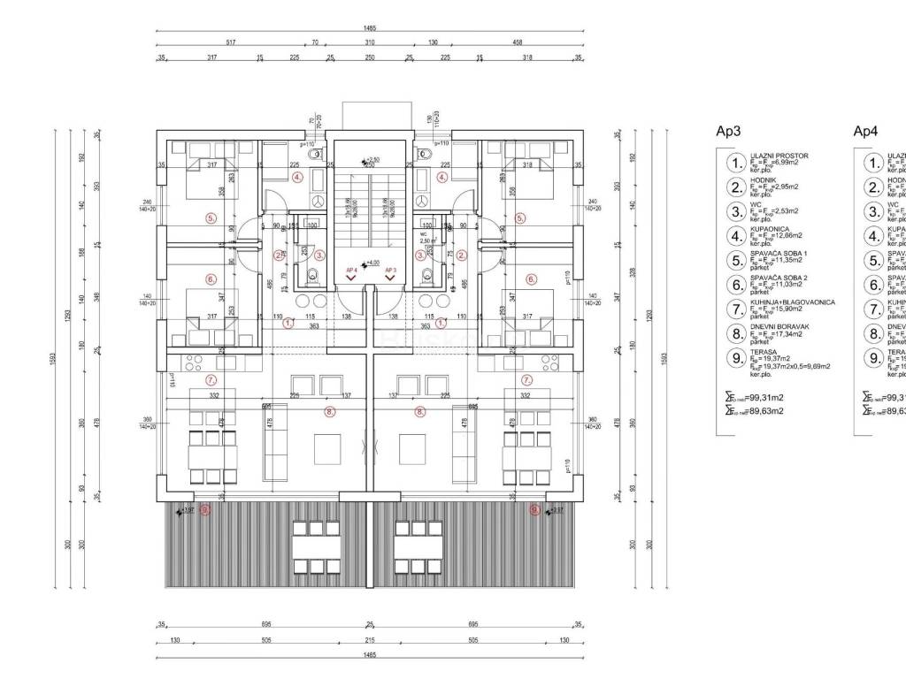 www.biliskov.com ID 14992Pag, BošanaA luxurious three-bedroom penthouse in a new building with a total area of 94.48 m, scheduled for completion by June 2025.The apartment is located on the 1st floor of a beautiful two-story urban villa with a total of 4 apartments.It consists of an entrance hall, a spacious open-concept living room and kitchen with a sliding glass wall offering an indescribable panoramic sea view, a balcony, two bedrooms, a bathroom, and a separate toilet.