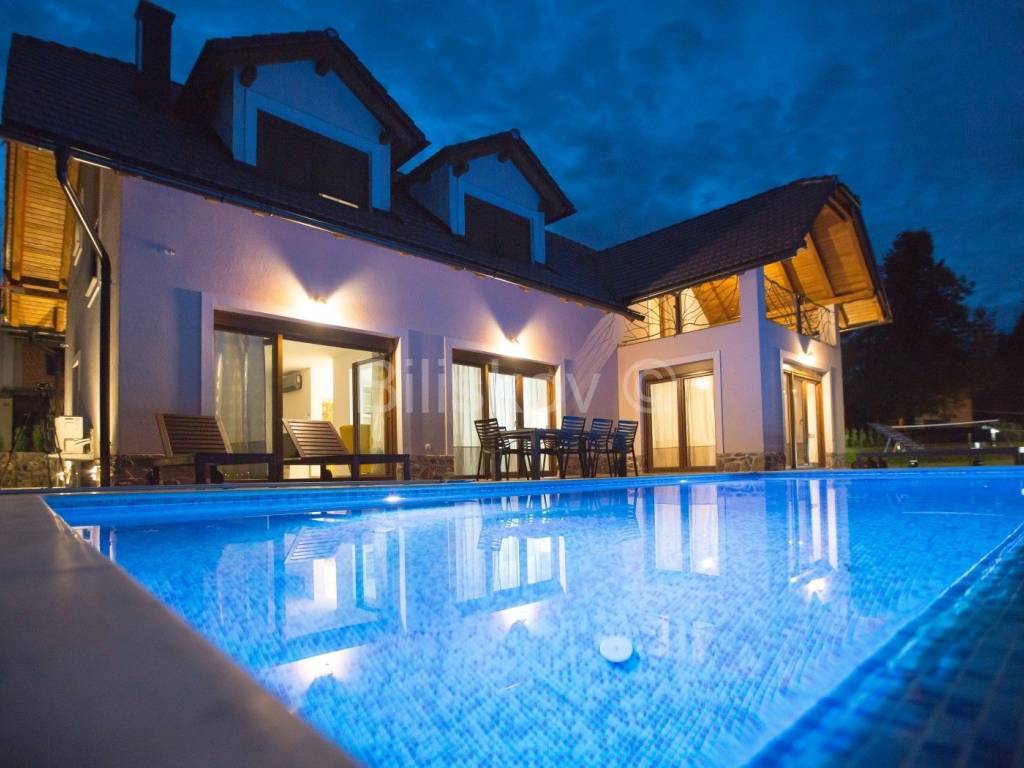 www.biliskov.com ID: 14762Ogulin, Lake SabljaciA beautiful villa with a swimming pool is located on the shore of the enchanting Lake Sabljaci, just a five-minute drive from the center of Ogulin. This luxury oasis offers everything needed for complete relaxation, while the proximity to the city provides easy access to all necessary amenitiesfrom shops and restaurants to cultural and sports facilities.Lake Sabljaci, surrounded by picturesque mountains, offers a unique atmosphere and is the perfect retreat for relaxation throughout the year. In the summer, while temperatures rise in coastal areas, the cool mountain climate makes this destination ideal for escaping the heat. More and more visitors are discovering the charm of this type of nature getaway, enjoying the fresh air, tranquility, and refreshing mountain climate.This location also offers numerous activities for nature and adventure loversfrom hiking and cycling to enjoying lake sports. The idyllic lake, with crystal-clear water, greenery, and peace, provides a special sense of relaxation, making the stay an unforgettable experience for all visitors.