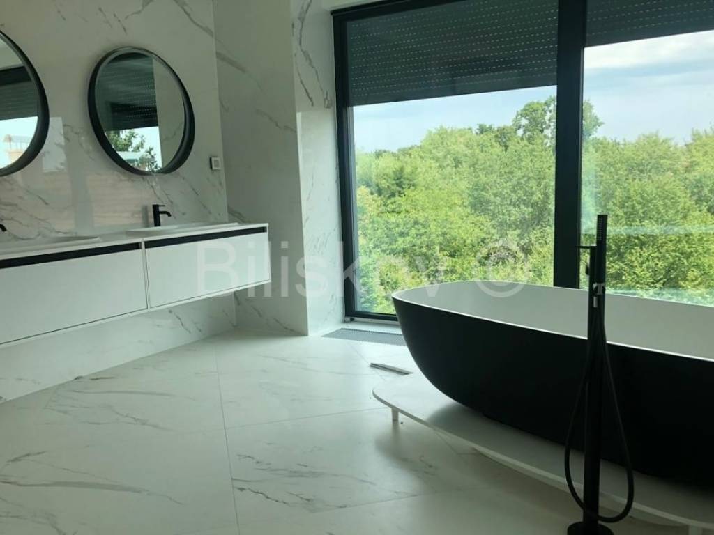A unique luxury villa with an area of 520 m2, built in 2022. The villa consists of 4 floors, each of which can be reached by a shared staircase. The ground floor features a spacious garage that can fit two large vehicles, an entrance hall, a guest toilet, and a spacious open space kitchen with a living room that opens onto a large terrace. On the first floor, there are three very spacious bedrooms, each with its own bathroom, and two terraces. The second floor has a master bedroom with a spacious bathroom and a walk-in closet and a small balcony, as well as another spacious bedroom with its own bathroom and terrace. The lowest floor, which opens onto the garden, is designed as a space for spa, relaxation, or workouts, and also features an indoor pool measuring 11.30m x 2.80m. The carefully designed outdoor area includes a terrace with a spacious garden ideal for outdoor gatherings. The villa is equipped with the latest smart home technologies, underfloor heating, solar panels, and luxurious carefully selected details that make the interior of this villa unique. This beautiful modern villa represents a combination of comfort, luxury, and practicality. It is located in a very quiet street in the heart of Šalata, in close proximity to schools, kindergartens, shops, and all other important amenities. In whichever room you find yourself, you will enjoy a beautiful view of the greenery that is unique to this villa and is extremely rare to find in the very heart of Zagreb. This villa is perfect for all urban lifestyle lovers who want to enjoy a natural environment.