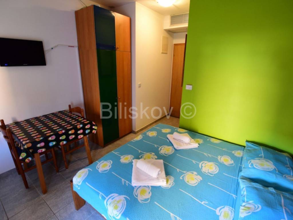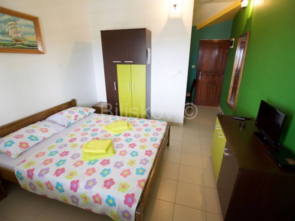 Objekt 1.- izgradnja 2003 god.- 564 m2 BRP- 454 m2 NGP- suteren, prizemlje, kat, visoko potkrovlje- ukupno 17 studio apartmana- u suterenu se nalazi kotlovnica, praonica, skladište, 3 sobe za osoblje, 3 kupaonice s tuš kabinom- kompletno grijanje hlađenje svih prostorija