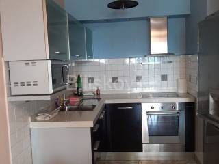 It consists of a kitchen with a dining room and a living room, a bedroom, a study room, a bathroom and a large south-facing loggia with a view of the sea.