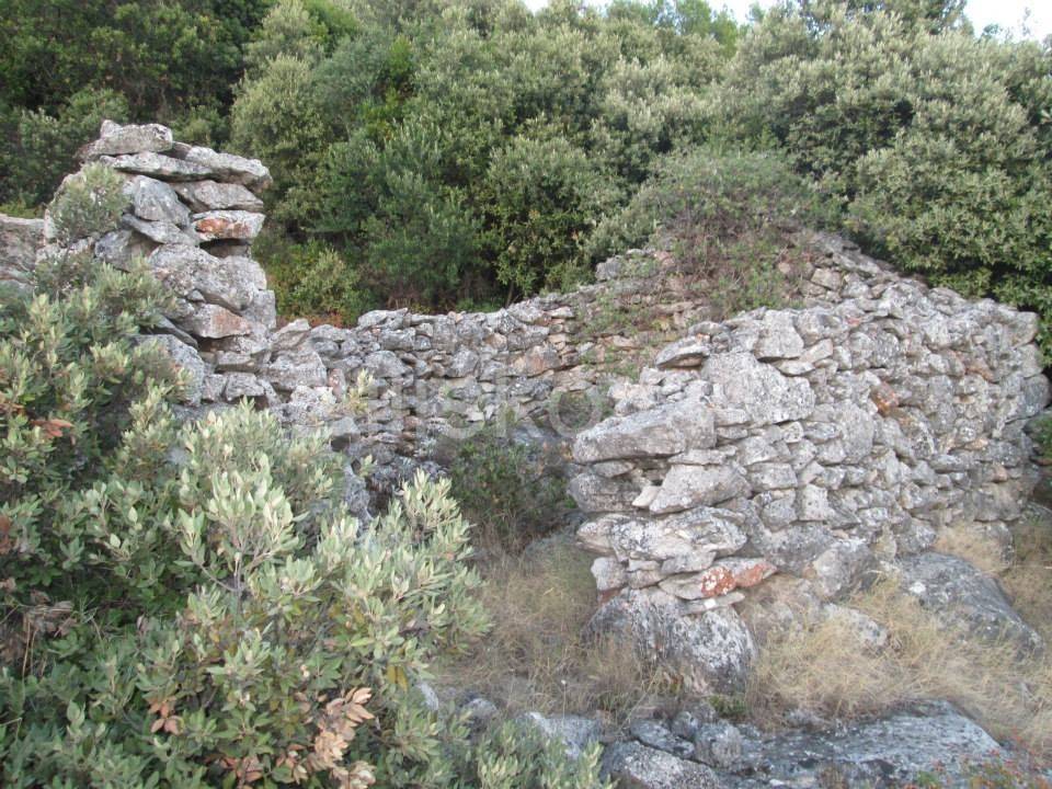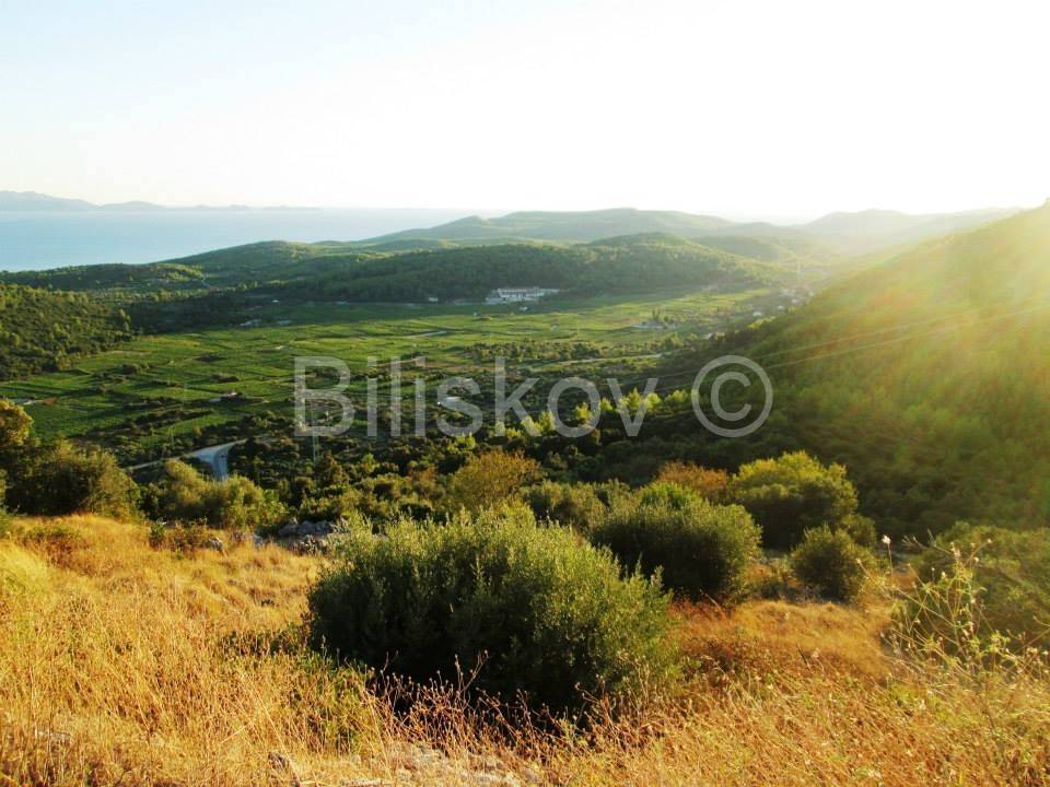 Korčula - Čara.Poljoprivredno zemljište uz cestu površine 9.700m2 sa 3 stare kamene kućice, svaka cca 10m2 i bunarom.