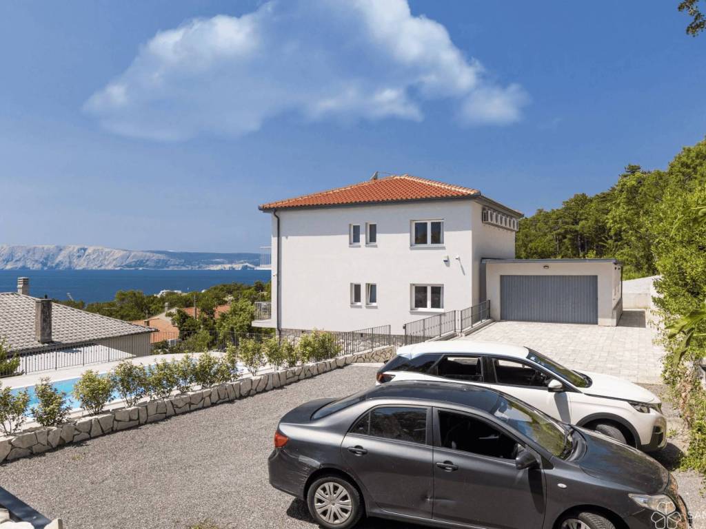 Villa Novi Vinodolski, surroundings: subterrain + ground floor + first floor - living area 240 m2 (5 bedrooms + 6 bathrooms) + garage + swimming pool with sundeck + garden + 6 outdoor parking spaces, on a plot of 860 m2 = 950.000 EUR (with furniture included)