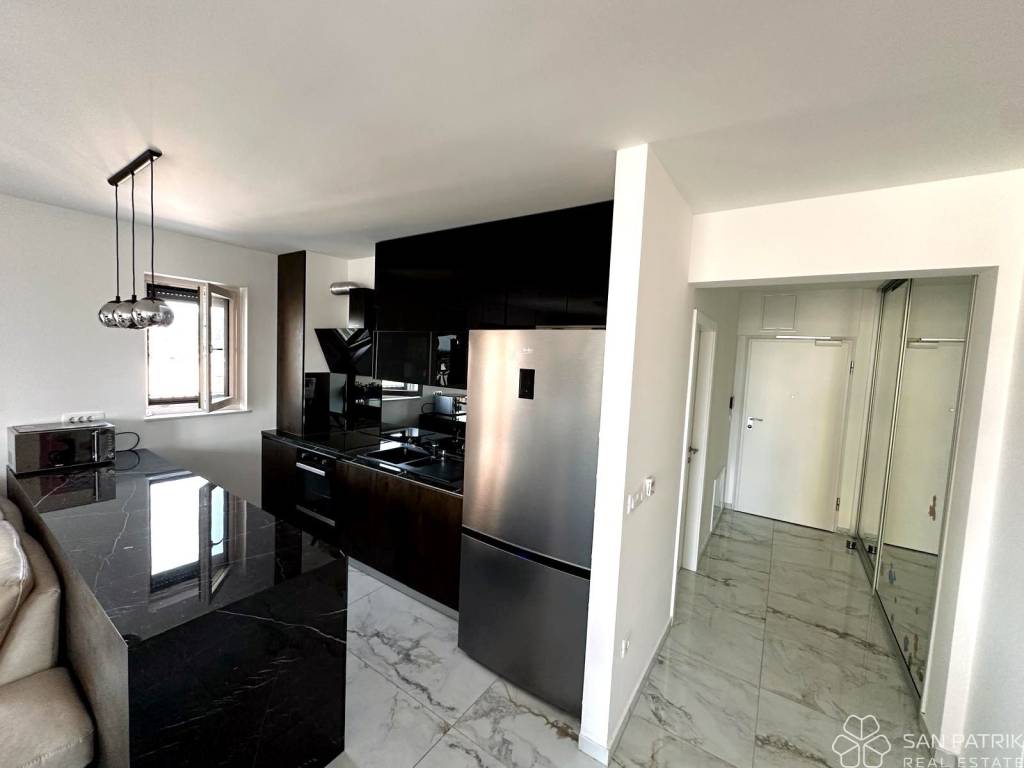 The penthouse includes two connected garage parking spaces, and residents can enjoy a fast Schindler elevator. Kitchen surfaces are made from high-temperature resistant porcelain, adding to the modernity and functionality of the space. The building's location is excellent, just 100 meters from the tram station and 5.7 km from the center of Zagreb, allowing residents easy access to all necessary amenities for a comfortable life.
