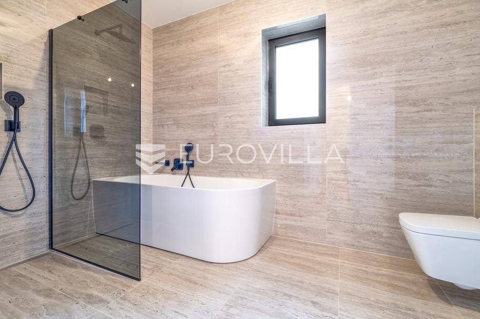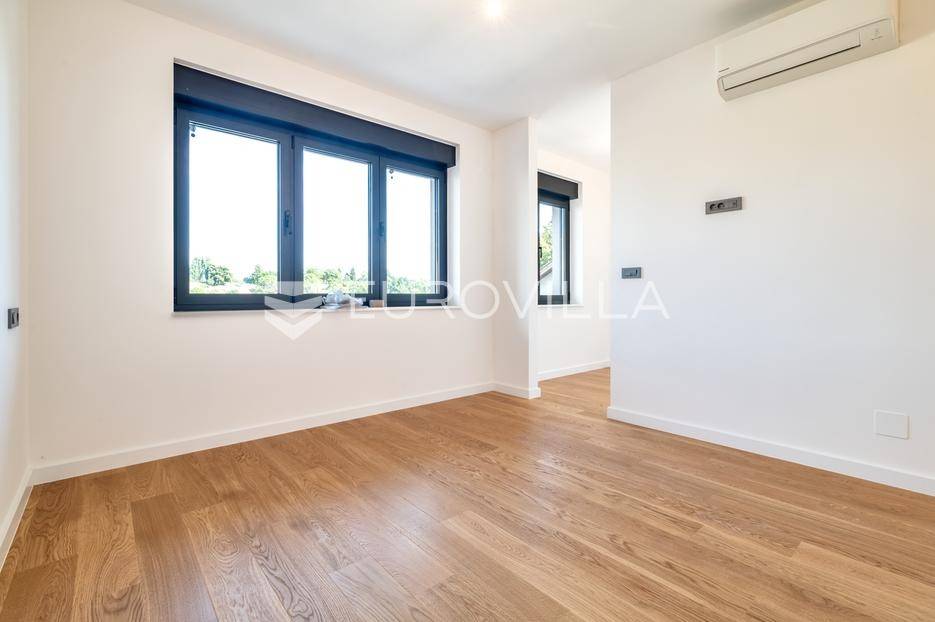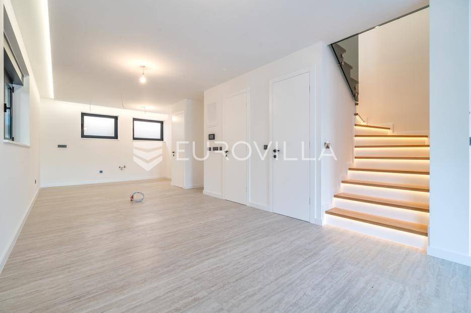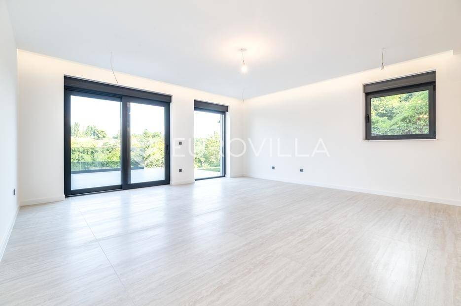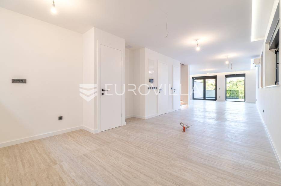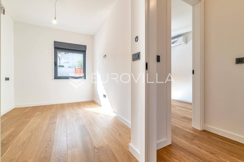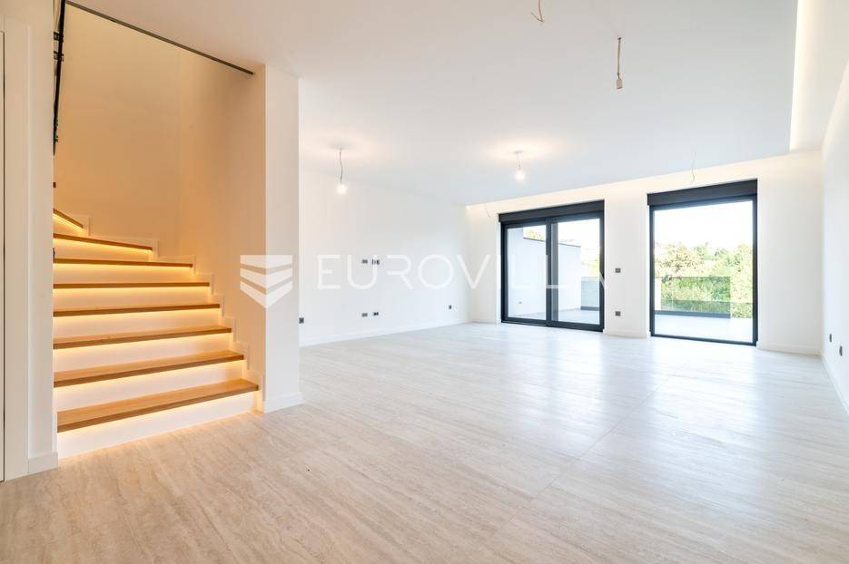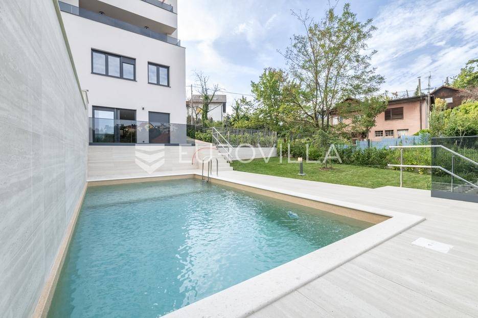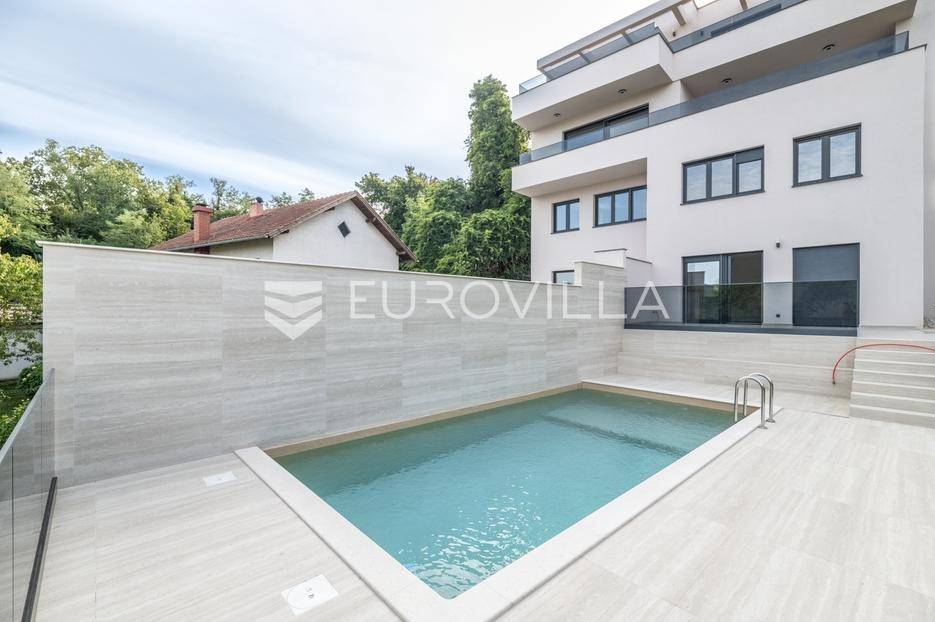 Zagreb. Šestine, luksuzan dvoetažan četverosoban stan s bazenom, NOVOGRADNJA, NKP 184 m2 smješten u prizemlju luksuzne urbane vile. Ukupna zatvorena površina stana iznosi 150 m2.Sastoji se od dvije etaže:prva etaža sastoji se od ulaznog hodnika iz kojeg ulazimo u tri spavaće sobe od kojih je jedna master s vlastitom prostranom kupaonicom i walk in ormarom dok u drugoj sobi nalazimo garderobu, idealnu za organizaciju prostora. Ovdje se nalazi i dodatna kupaonica.na drugoj etaži smješten je veliki dnevni boravak s modernom kuhinjom i blagovaonicom, izba, kotlovnica te gostinjski toalet. Iz dnevnog boravka izlazi se na prostranu terasu od 23.5 m2 (5.88) te vrt s bazenom od 80 m2 (8).Svaka prostorija opremljena je zasebnim klimatizacijskim sustavom, što omogućuje savršenu temperaturu i potpunu udobnost u svakom kutu doma tijekom cijele godine. Ugrađene dizalice topline dodatno pridonose energetskoj učinkovitosti i održivosti prostora.Poseban naglasak stavljen je na detalje i visoke standarde - vrhunska aluminijska stolarija, hrastov parket prve klase i odabrana keramika vrhunske kvalitete jamče dugotrajnost, estetiku i osjećaj sofisticiranosti u svakodnevnom životu.Stanu pripada jedno vanjsko natkriveno parkirno mjesto opremljeno punionicom za električna vozila te jedno nenatkriveno parkirno mjesto koje je uračunato u cijenu.Nekretnina koja spaja suvremeni luksuz, funkcionalnost i udobnost doma - idealno mjesto za obiteljski život s dozom elegancije. Stambena zgrada sastoji se od 4 stana, dva u prizemlju s bazenima, jedan uvučeni kat i jedan na prvom katu. Nalazi se u luksuznom dijelu grada, nadomak centru i svim urbanim sadržajima a opet u srcu prirode za miran i kvalitetan obiteljski život.Za dodatna pitanja stojimo na raspolaganju.