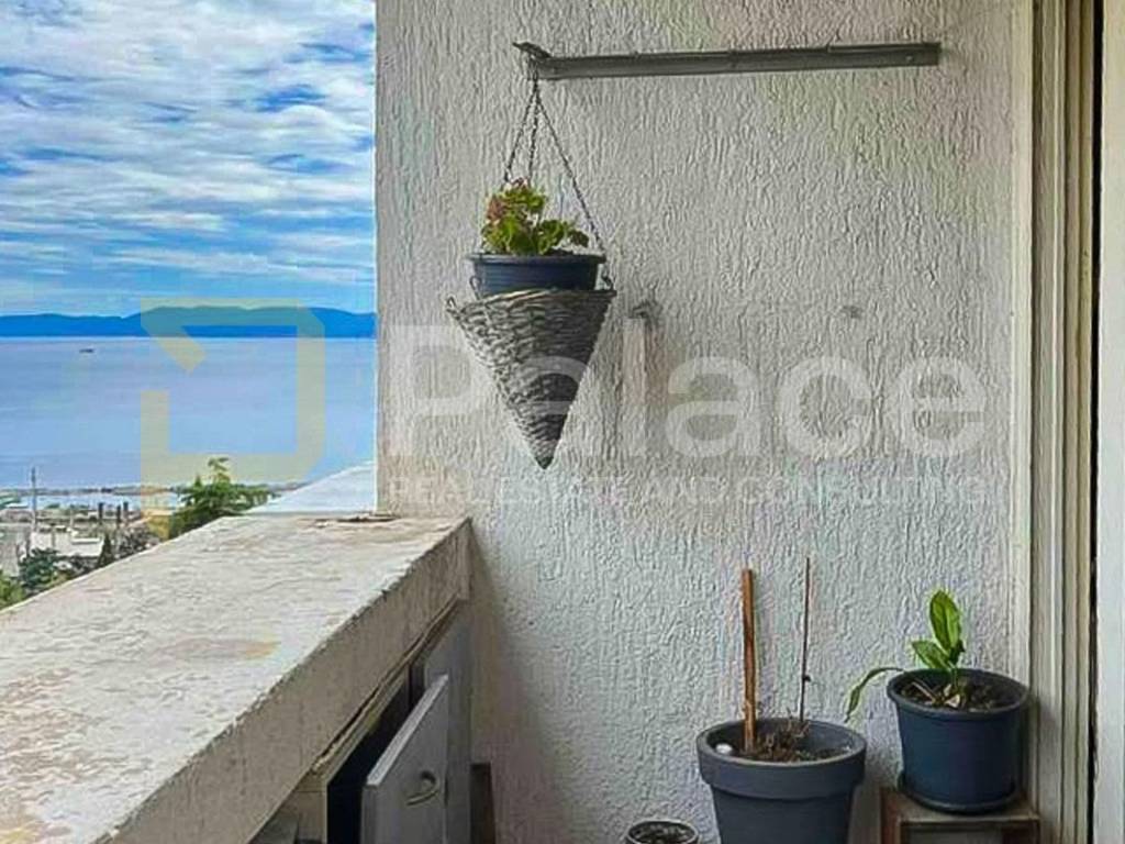 The apartment consists of an entrance hallway leading to three bedrooms - a master bedroom with a double bed, a children"s room with a single bed, and a room with bunk beds. The living room, kitchen, and dining area are connected in an open space, with access to a balcony with partial sea views from the living room. The bathroom is neat and well-maintained, and there is also a practical storage room converted into a laundry room with a washing machine and dryer. The apartment is fully furnished and equipped with all necessary appliances - including a dishwasher and air conditioning - and is being sold as such.
