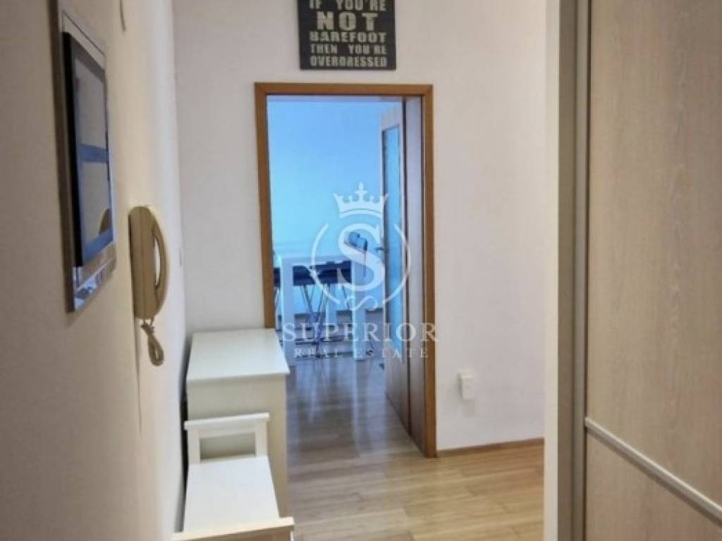 The apartment exudes warmth and brightness, with a spacious open-plan living area and a balcony offering a beautiful view of Kvarner Bay.