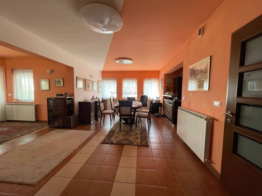 Kuća je koncipirana na dvije etaže povezane centralnim stubištem, s ukupnom neto stambenom površinom od 315m2 te s pripadajućim dvorištem, velikom garažom i predivnim vrtom.