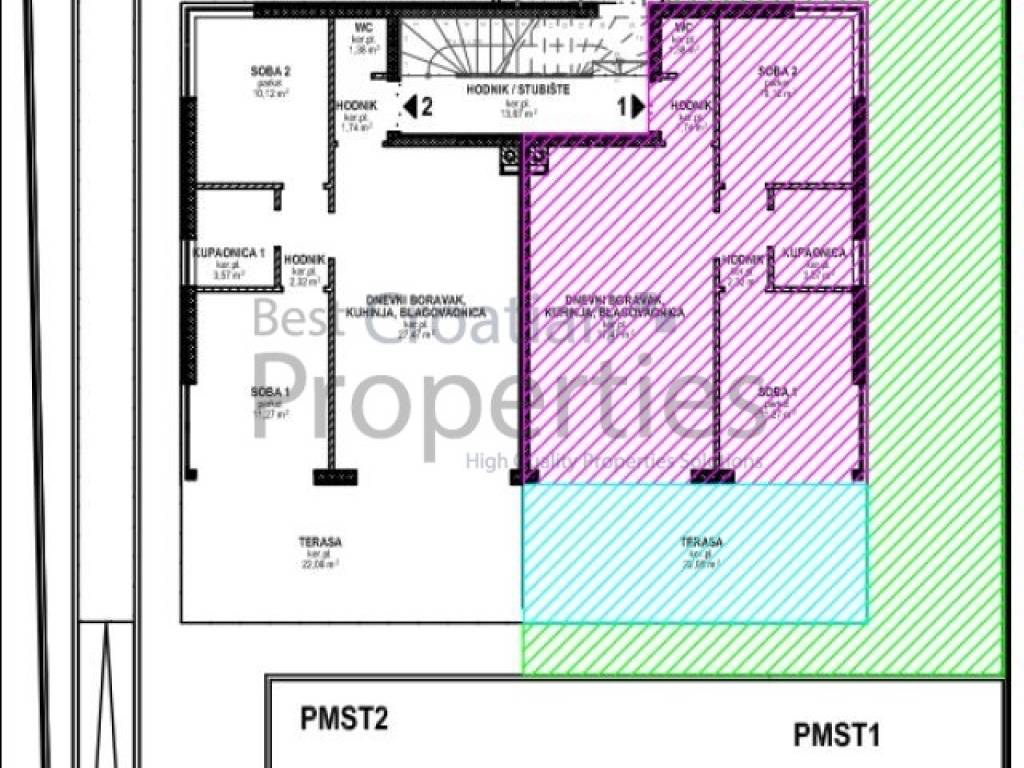 natkrivene terase od 22 m, s izlazom kroz veliku kliznu staklenu stijenu