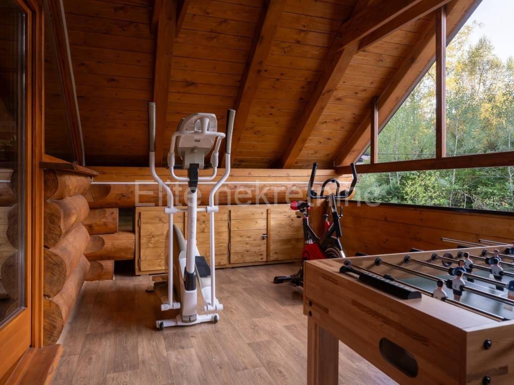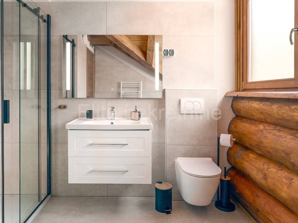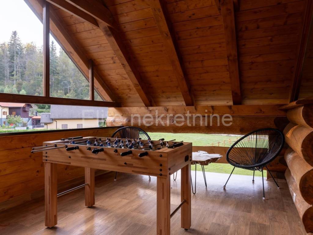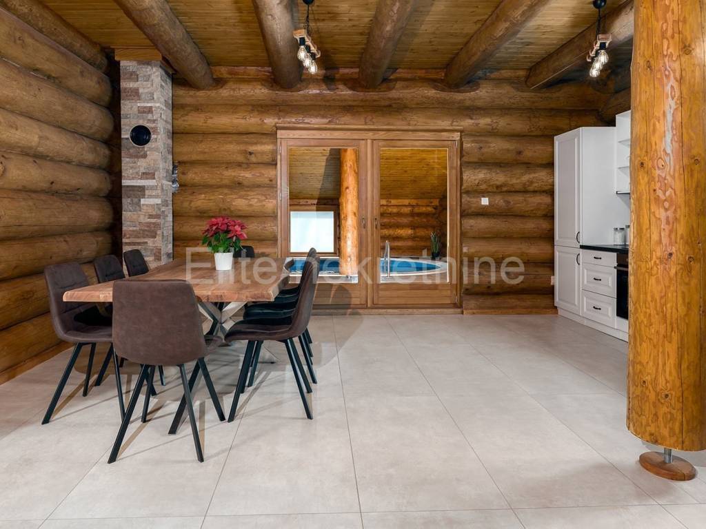 FAUŽINE - sale of a luxurious wooden holiday home with an indoor pool! We are selling a luxurious and modernly equipped wooden house of 200 m, located in the picturesque surroundings of Fužine. This unique property offers a high standard of comfort, peace and functionality, and at the same time represents an excellent investment opportunity. The house was built in 2023 and has been successfully operating as a holiday home since then with an already developed brand, its own website and active profiles on social networks (Instagram and Facebook). It is ideal for those who want to take over a ready-made and well-established tourist facility. The property features include: 4 spacious bedrooms 2 modern bathrooms Open concept living room Equipped kitchen with dining area Heated indoor pool with a constant temperature of 30 C throughout the year Infrared sauna for a complete wellness experience, fireplace Outdoor barbecue area ideal for gatherings and socializing Private fenced yard with video surveillance Underfloor heating and heating via heat pump Possibility of remote control of heating and monitoring system via mobile application Secured private parking The property is located only 20 minutes drive from the Platak ski resort, numerous hiking and cycling trails and other natural attractions of Gorski Kotar. The sea and the Adriatic coast are accessible in less than 25 minutes drive, combining mountain and sea tourism in a unique destination. The property is sold fully furnished and ready for continued business or personal use. It is ideal for private buyers looking for a quiet location with top-notch equipment, as well as for investors who want to generate income through tourist rentals. The agency commission is charged in accordance with the General Terms and Conditions available on the website www.elite-nekretnine.hr/opci-uvjeti-poslovanja.