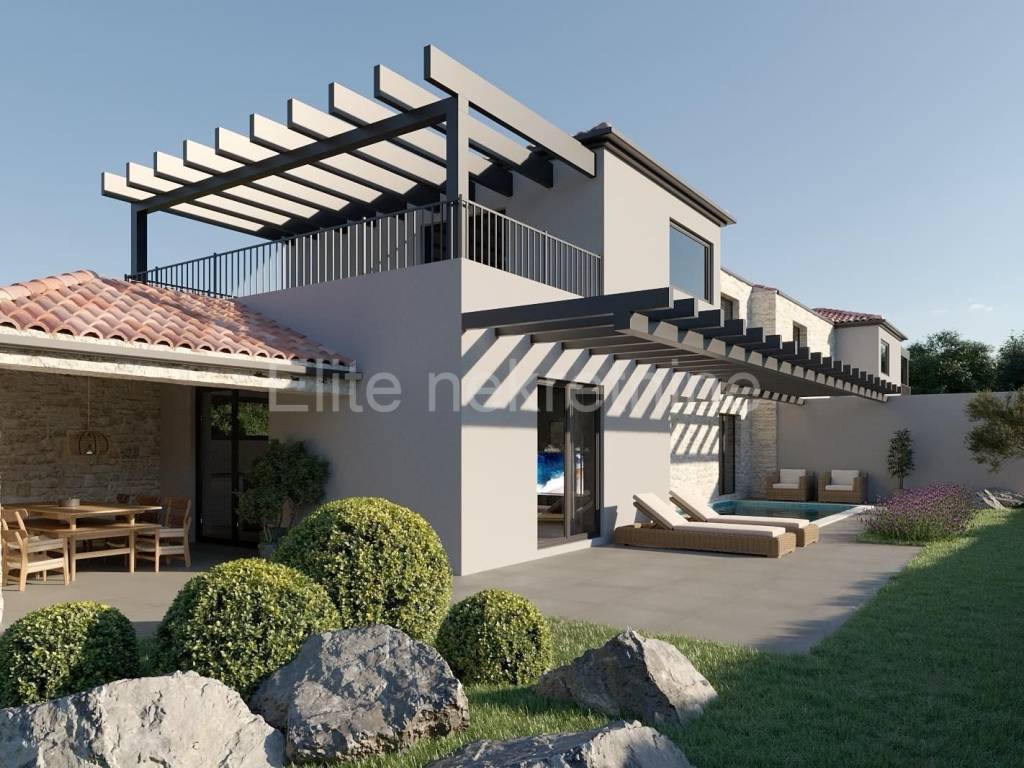 Šišan is a quiet urban place within the municipality of Ližnjan. In this quiet place, 3 km from the sea, two semi-detached villas are under construction, each measuring 170 m2 and spread over a plot of 465 m2.It consists of spacious living rooms on the ground floor with a bedroom and bathroom, and two bedrooms on the first floor.