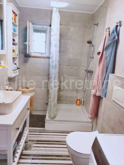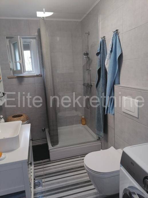 We mediate in the sale of an apartment in a house of 63 m2. The apartment is newly renovated and furnished. Two bedrooms, living room with kitchen, hallway and a nice bathroom. The apartment is on the first floor, 58 m2 and a storage room of 5 m2 + a south-facing terrace of 12 m2 with a parking space and a landscaped yard of 40 m2 (everything complete, from installations, walls and floors, ceramics, the roof of the house, all in 2023). Very comfortable for living. Built-in high-quality devices for cooling and heating, and optical Internet.