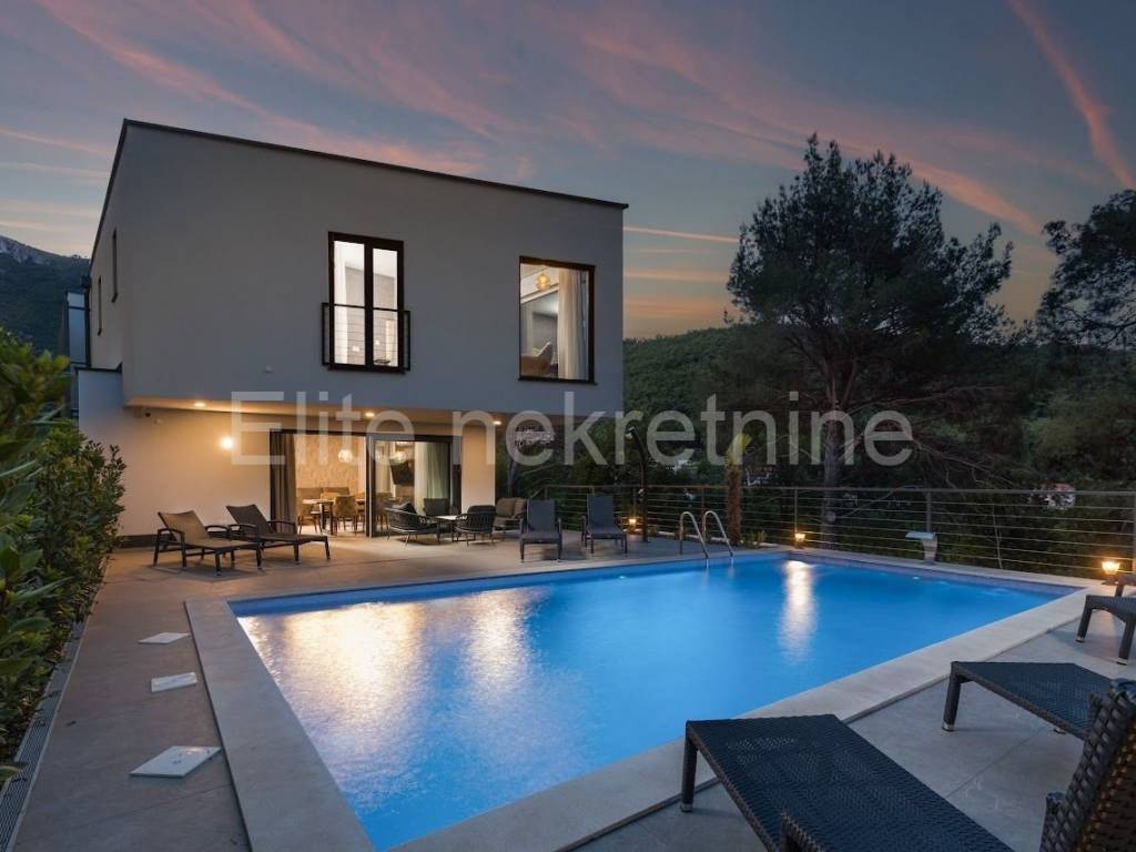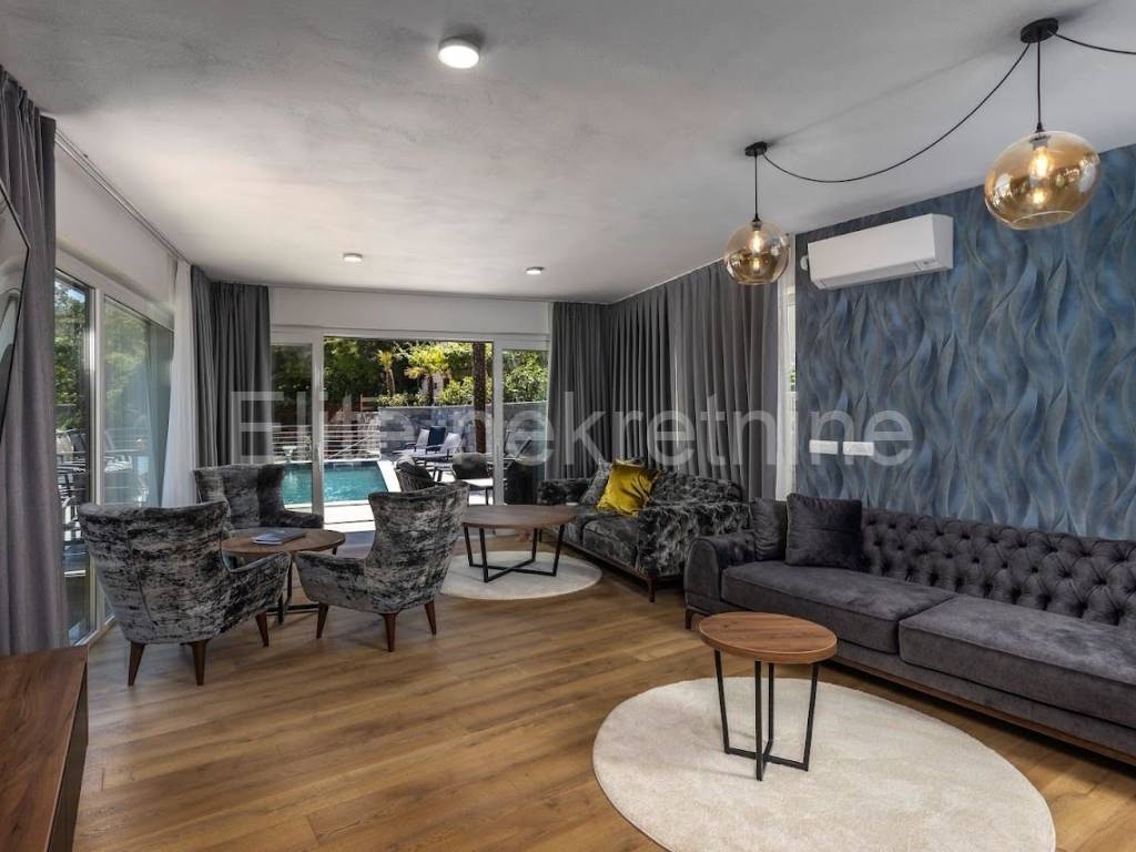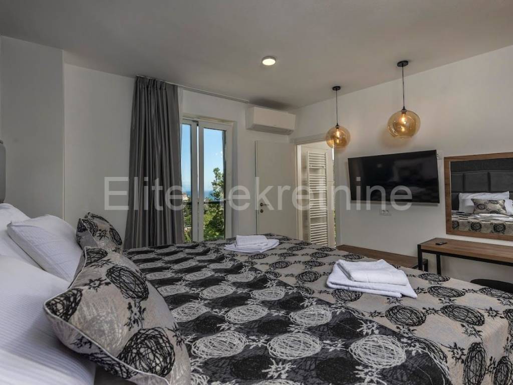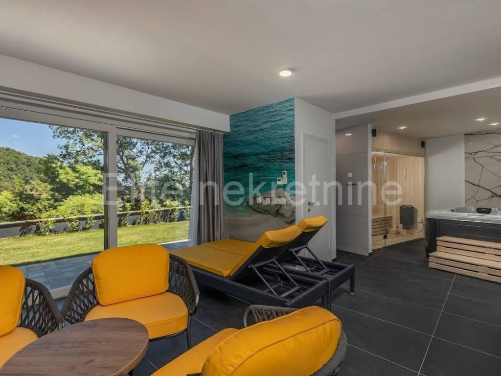 The exclusive villa is located on a 1230m2 garden in the immediate vicinity of the sea, surrounded by greenery with a view of the sea.