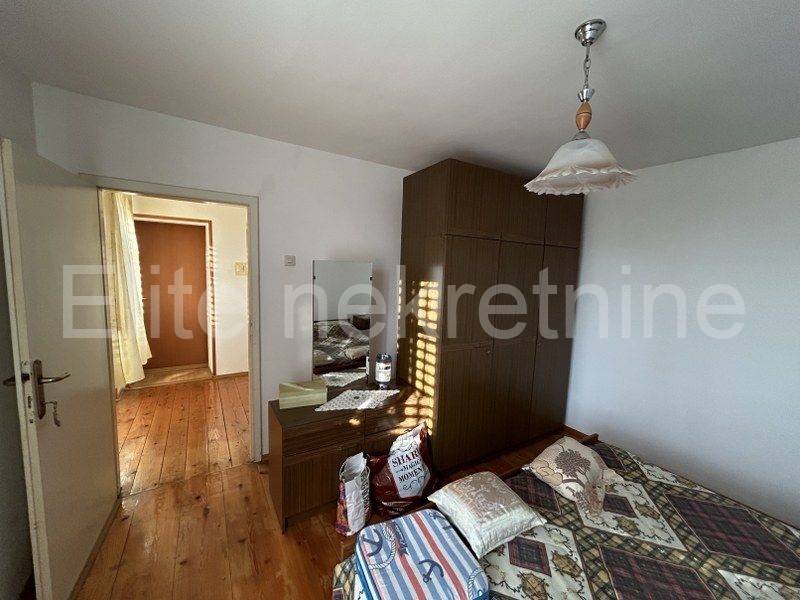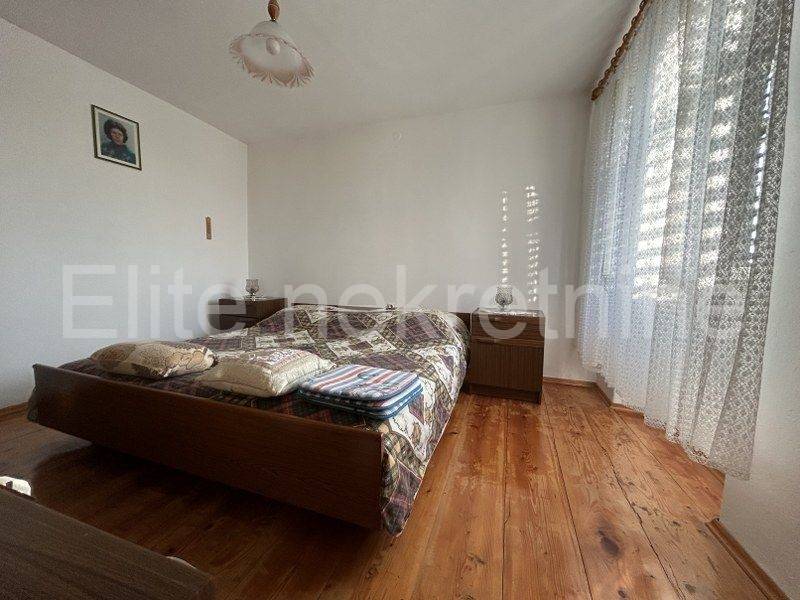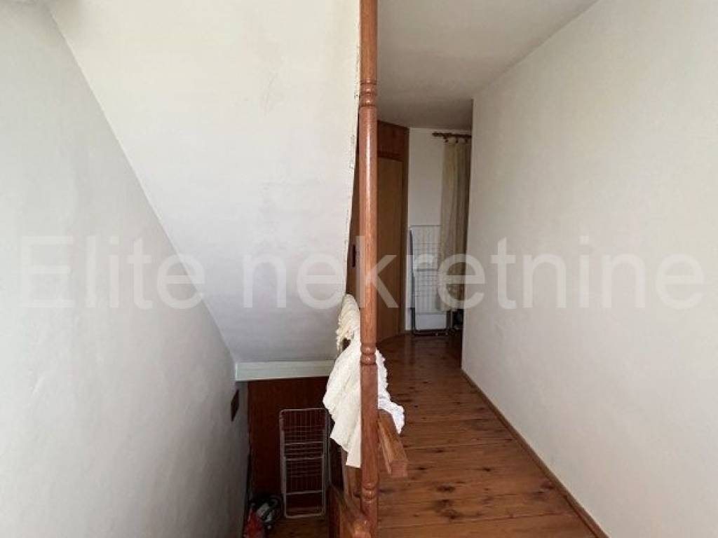 The house consists of a ground floor and a first floor with a common entrance. Upon entering the house, we enter a small hallway, where there is also a kitchen with a dining room, a living room (which currently serves as a bedroom) and a bathroom. From the hallway, there is a staircase that leads to the floor where there are three bedrooms and another staircase that leads to the attic of the house. The attic is currently unfurnished, but with a little effort it can be converted into another additional space according to your wishes.