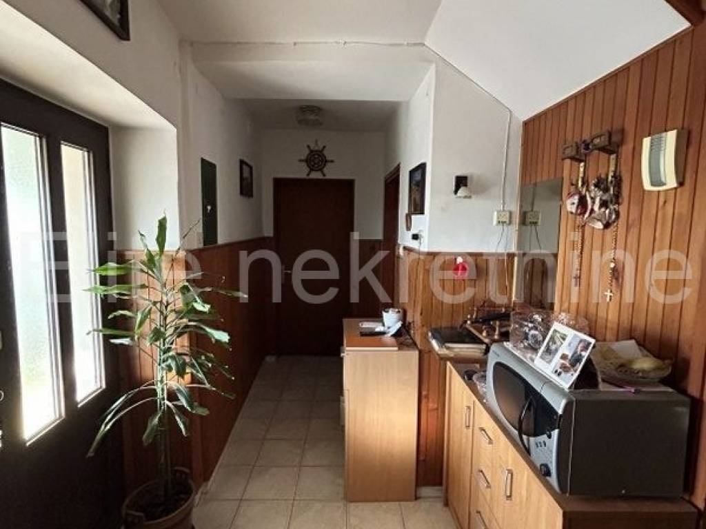 The surface of the house itself is 200m2 and 758m2 of garden, which is ideal for family life or renting to tourists. In addition to a beautiful garden with a small garden, next to the house there is also a small building that serves as a tavern, and a smaller covered storage for keeping equipment and tools. Behind the house there are two garages and a storage room for wood.